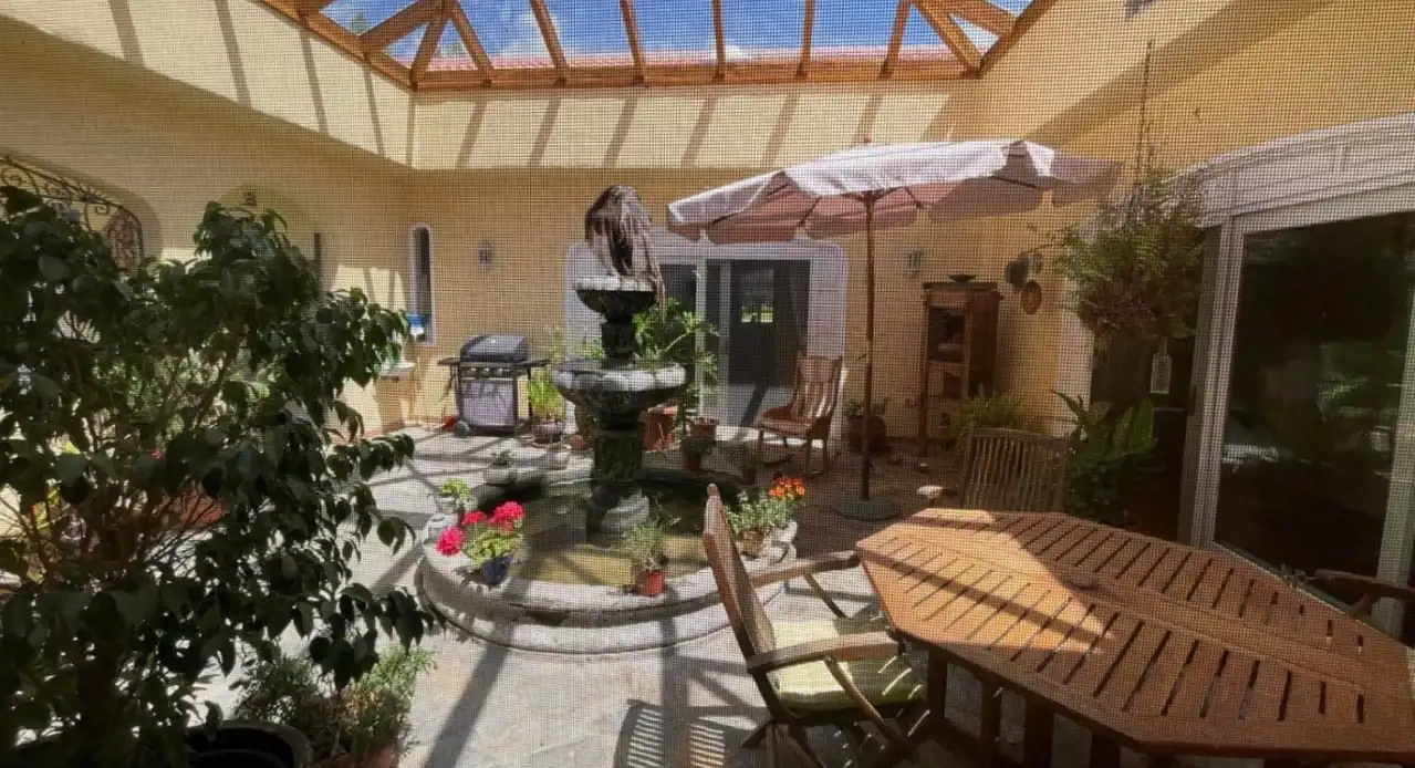Działka jest ogrodzone. Znajdziemy tam również: wspaniały ogród, małą winnicę, sady, stajnię, i ujeżdżalnię dla koni.