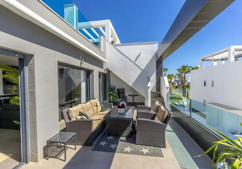 Posiada taras-solarium o powierzchni 110m2, z zainstalowaną letnią kuchnią z grillem oraz prysznic - idealne miejsce do spędzania czasu przez cały rok.