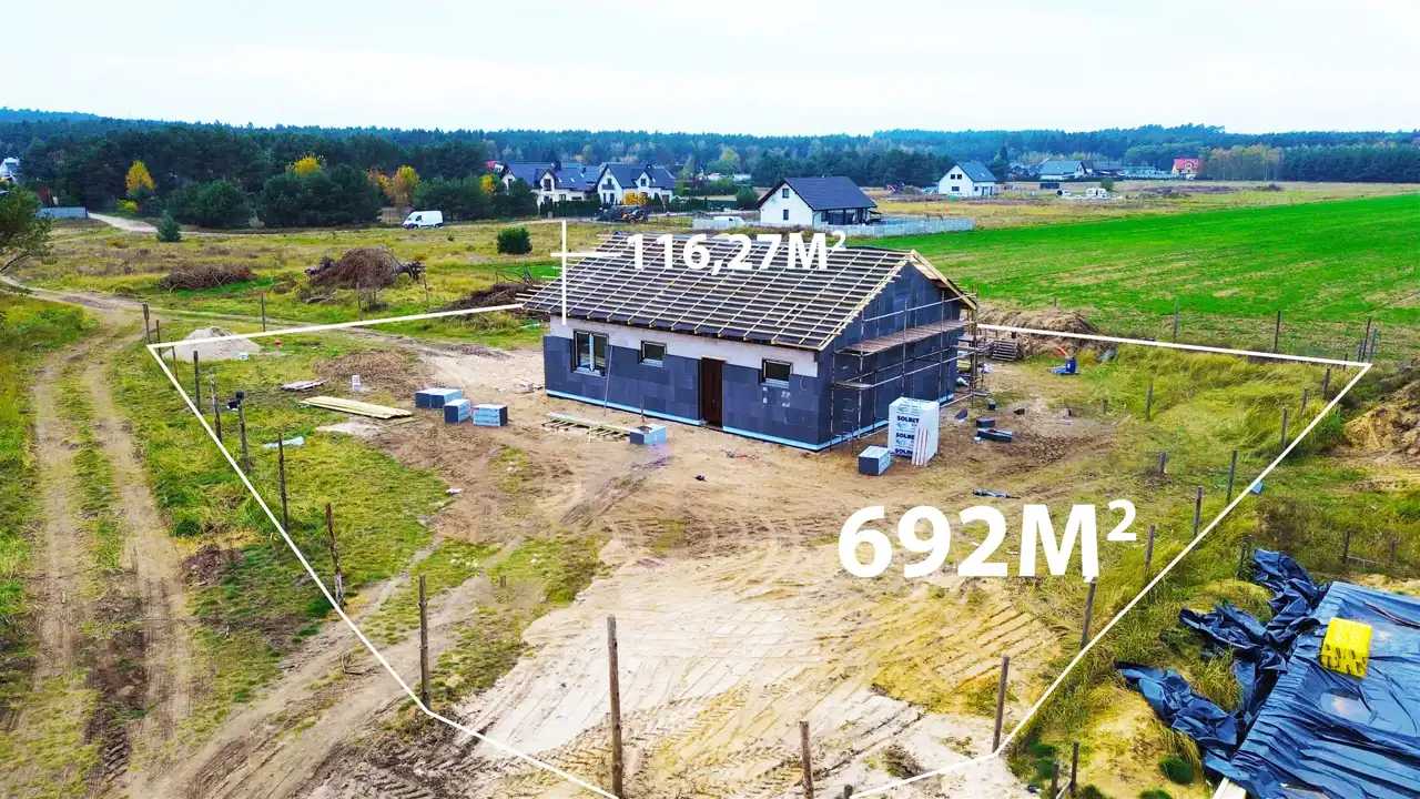 Całość położona jest na działce o powierzchni 692 m², z czego około 605 m² stanowi ogród, idealny do stworzenia strefy wypoczynkowej lub placu zabaw.