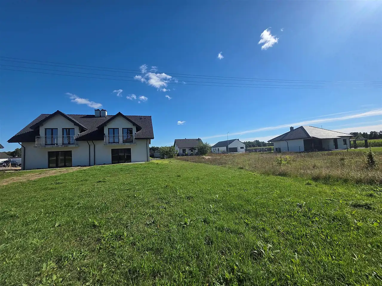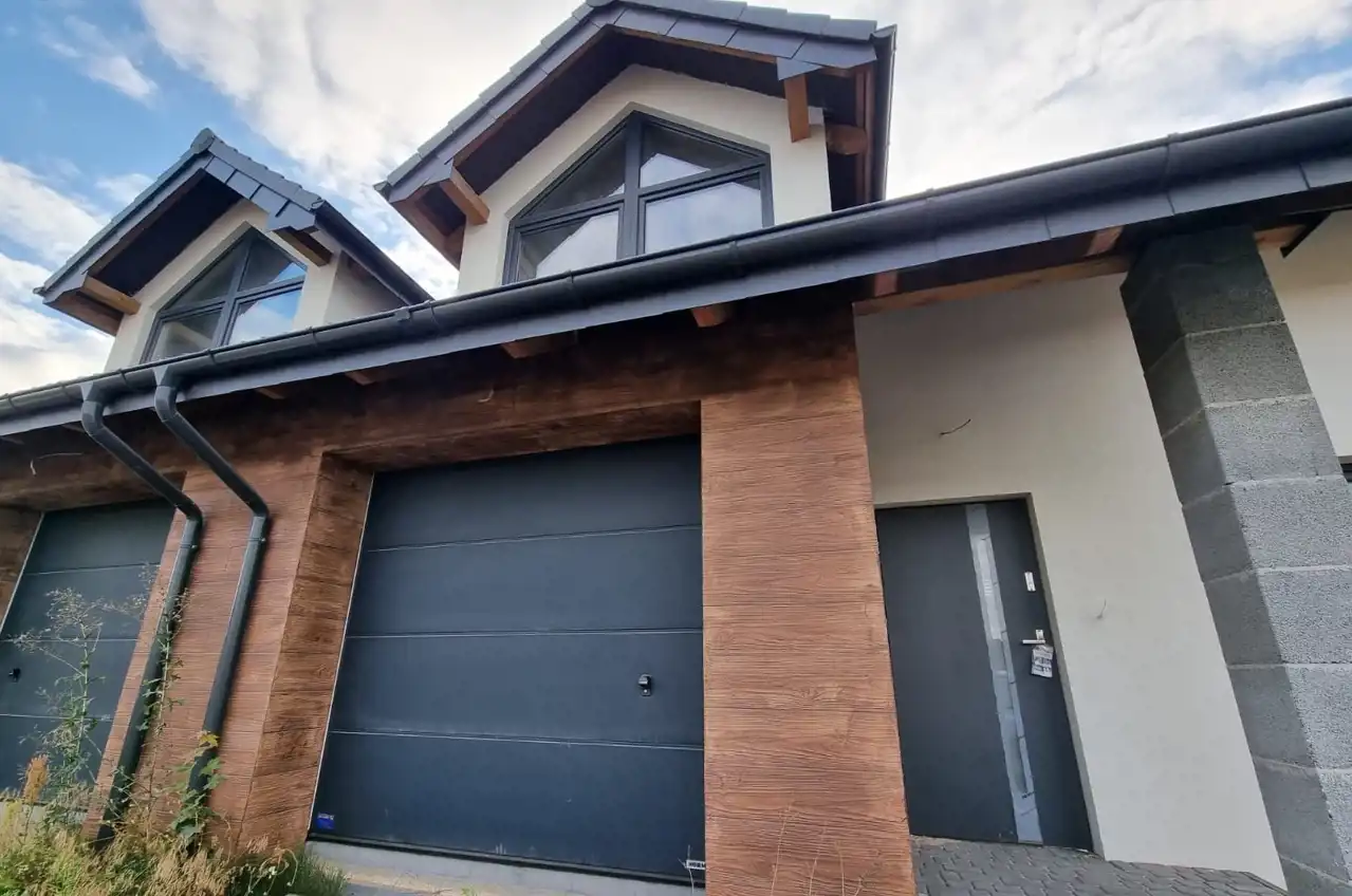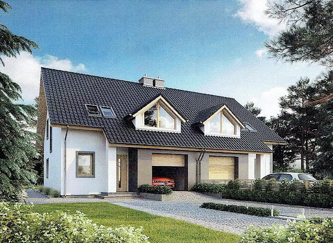 Nowy dom w zabudowie jednorodzinnej dwulokalowej, niepodpiwniczony, dwukondygnacyjny z wbudowanym garażem na dwóch działkach o powierzchni każda 670 m2 - Stan deweloperski