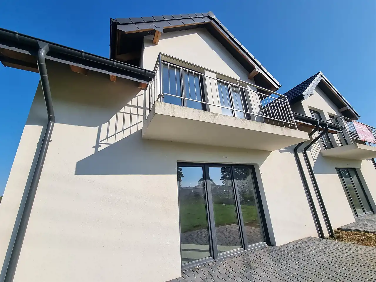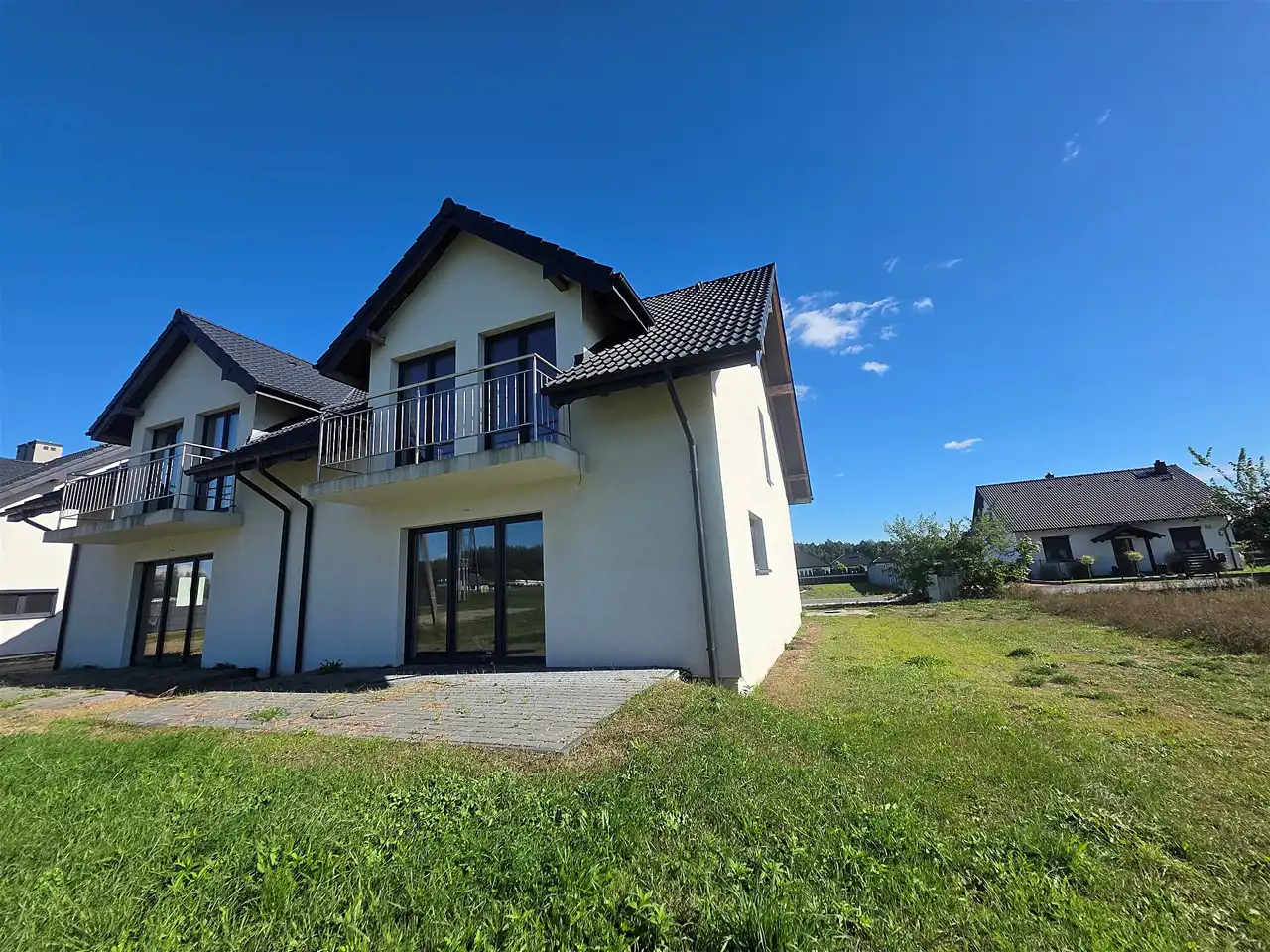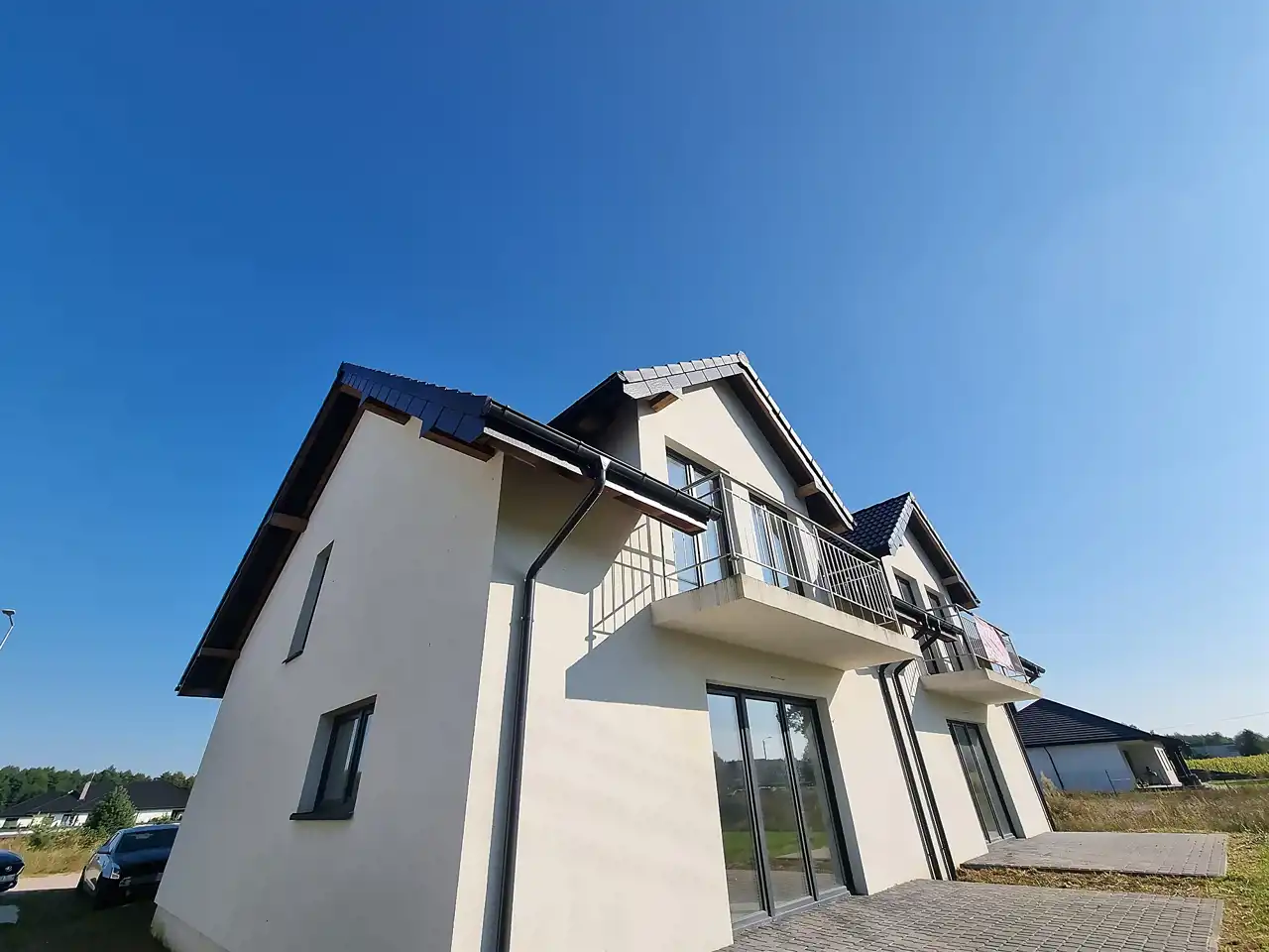 Nowy dom w zabudowie jednorodzinnej dwulokalowej, niepodpiwniczony, dwukondygnacyjny z wbudowanym garażem na dwóch działkach o powierzchni każda 670 m2 - Stan deweloperski