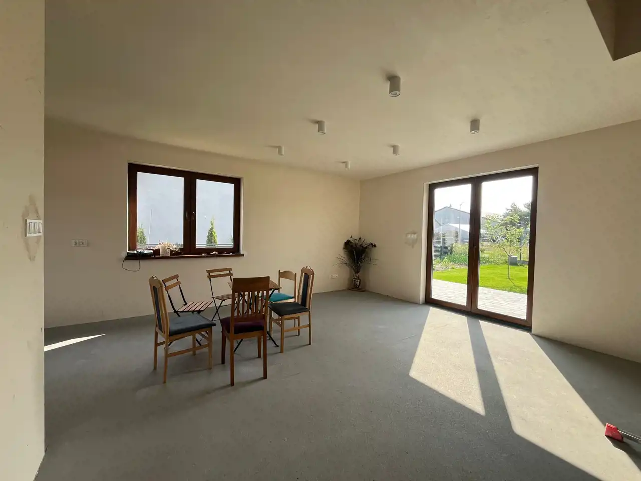 Budynek wybudowany z suporexu, docieplony styropianem 15cm. Na dachu dachówka w kolorze antracyt. Z zewnątrz budynek całkowicie wykończony: elewacja, rynny, wykostkowane wejście, opaska wokół domu, taras. Okna 3 szybowe wysokiej jakości, drzwi wejściowe w nowoczesnym designie. Wewnątrz stan deweloperski, na ścianach tynki, kładzione maszynowo. Rozprowadzone wszystkie instalacje: elektryczna, wod-kan. Ogrzewanie podłogowe oraz nowe grzejniki.