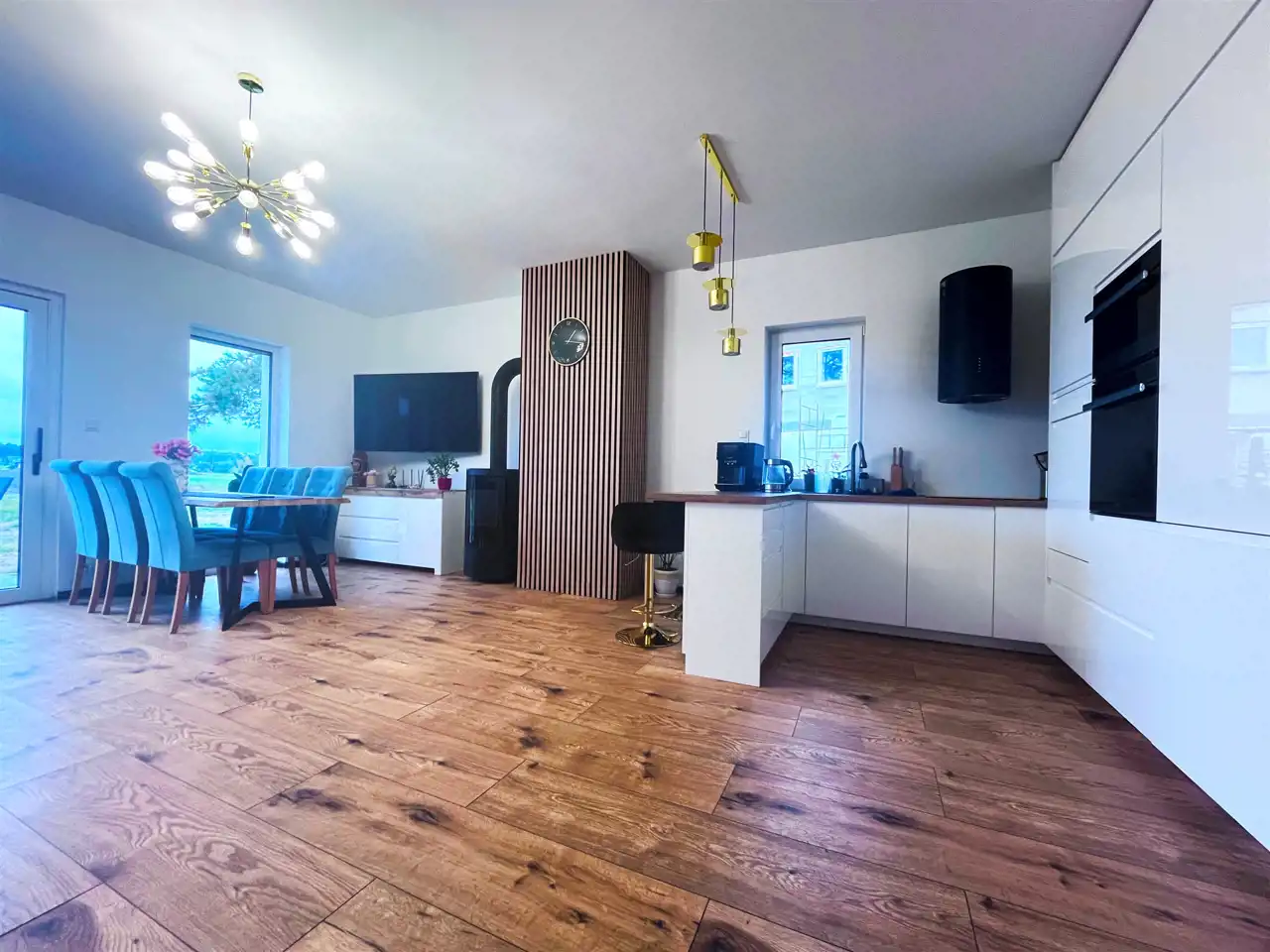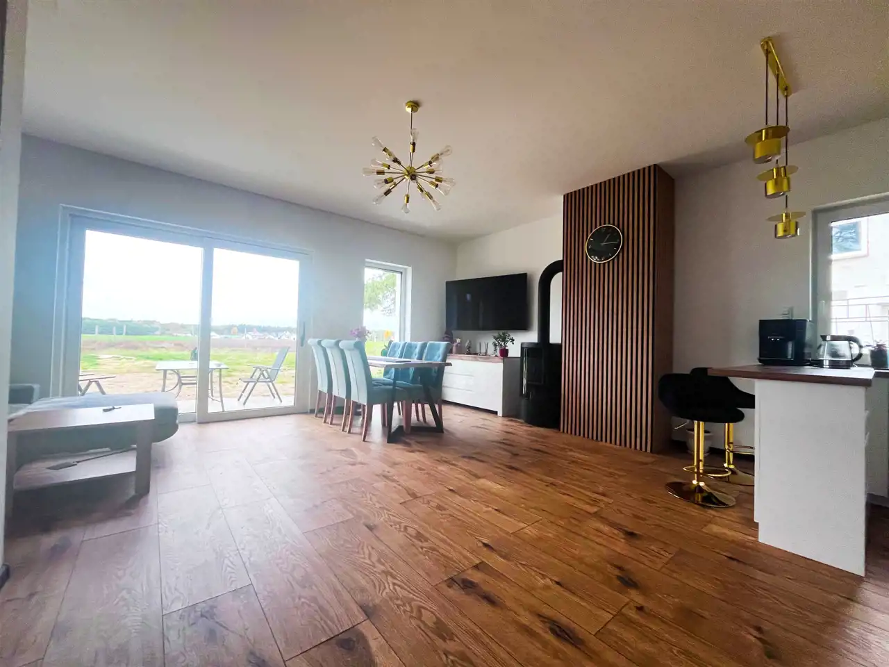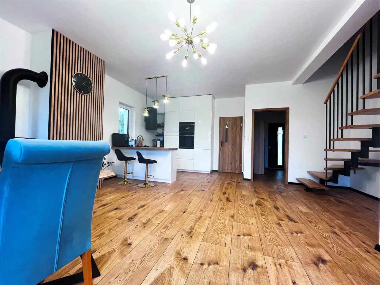 Na sprzedaż przestronny, nowoczesny dom wolnostojący o powierzchni całkowitej 118 m², położony w spokojnej okolicy Nowego Dąbia, zaledwie 19,5 km od Bydgoszczy.