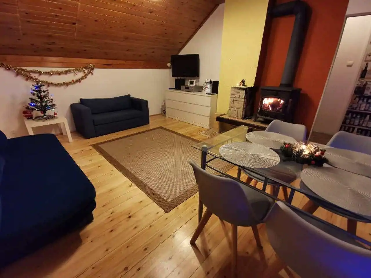 - ogrzewanie kominkowe zapewniające przytulną atmosferę zimą