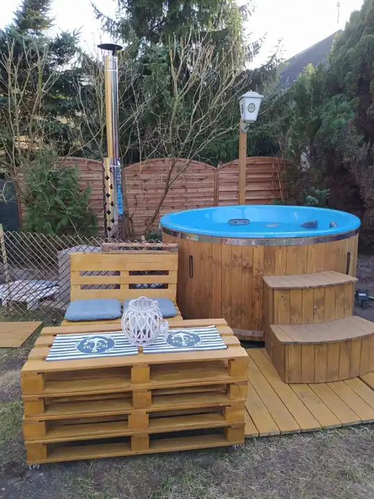 - Balia ruska / bania jacuzzi, opalana drewnem, dla 6 osób – idealna do relaksu i wyciszenia