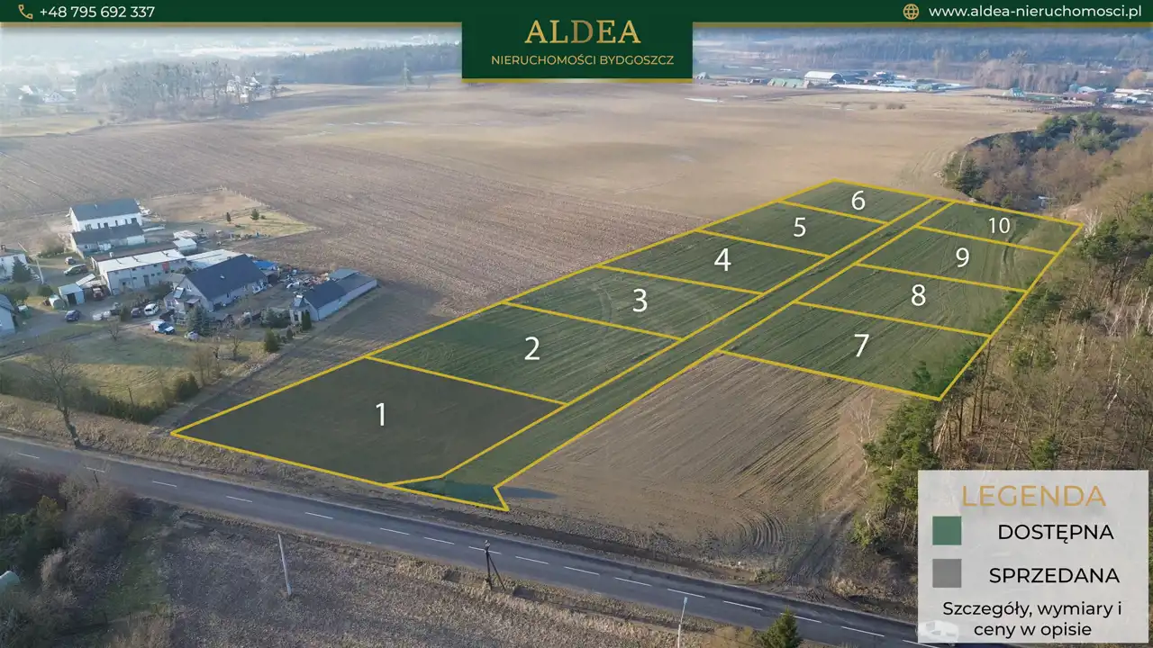 Poniżej przedstawiamy zestawienie aktualnie dostępnych parceli. Numery odpowiadają oznaczeniom na załączonej mapie: