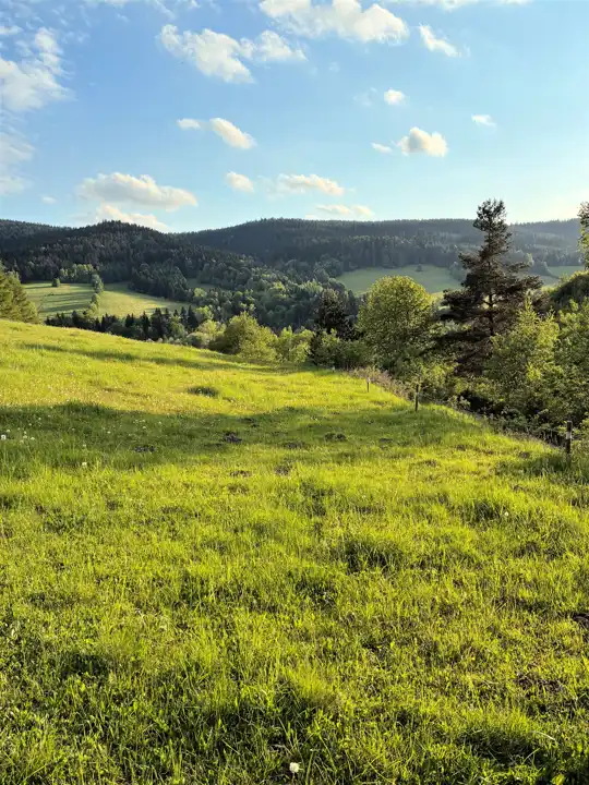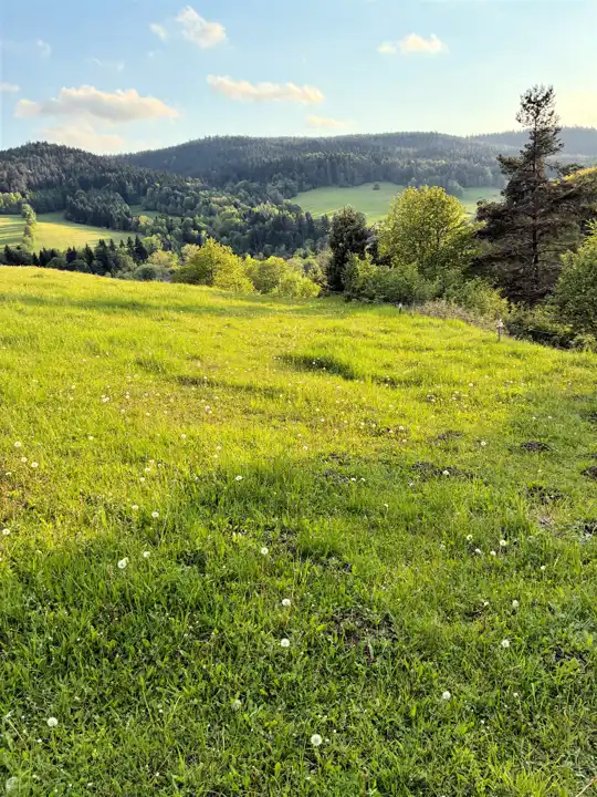 Działka zlokalizowana na lekko pochylonym stoku z ekspozycją na południe.