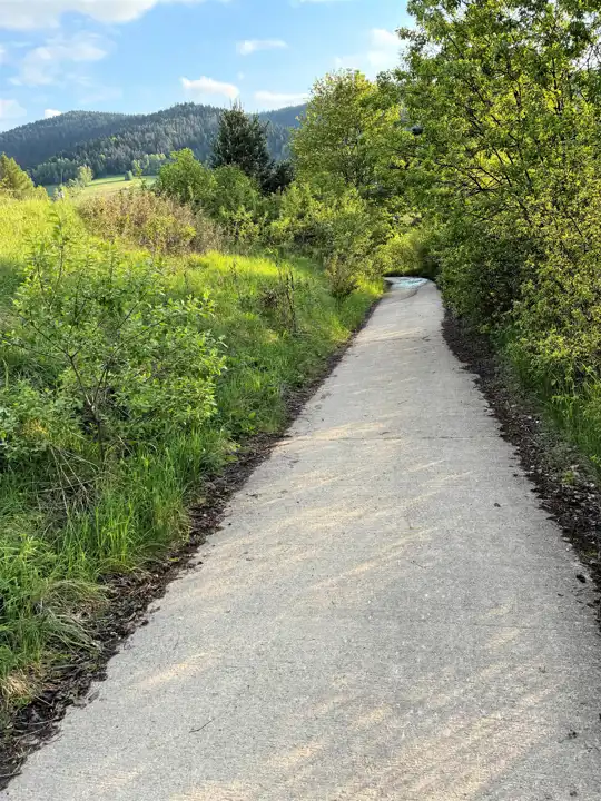 Wokół rozciągają się łąki i lasy duże kompleksy ze szlakami turystycznymi i rowerowymi,