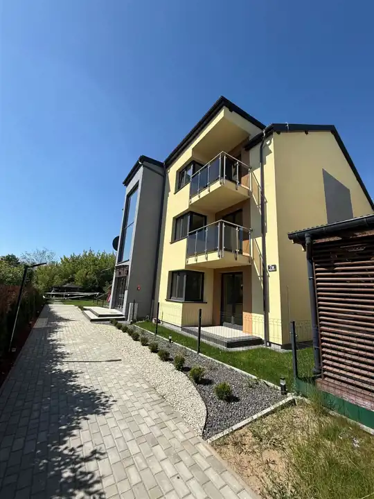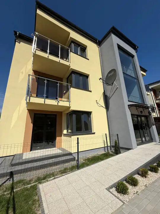 Każdy lokal mieszkalny posiada sypialnię, salon z aneksem kuchennym, łazienkę z wc, przedpokój oraz balkon lub ogródek.