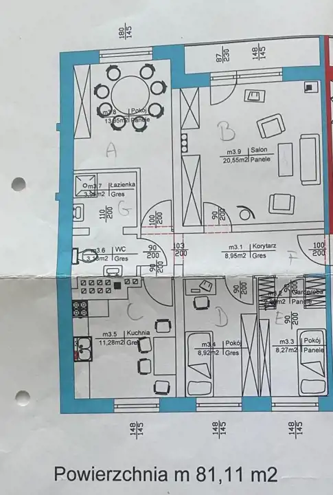 Powierzchnia mieszkania 81 mkw