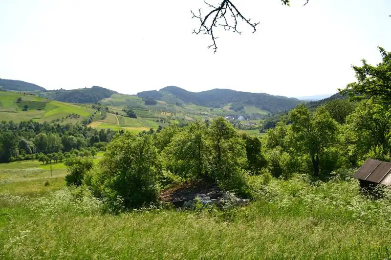 - Działka lekko pochyła, nieregularny