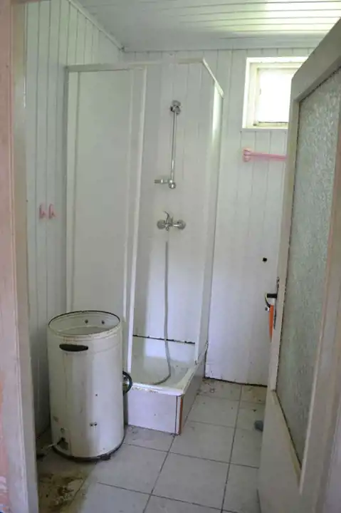 W budynku mieści się pokój, przechodnia kuchnia, łazienka, hol oraz pomieszczenie gospodarcze, które można zaadaptować na pokój.