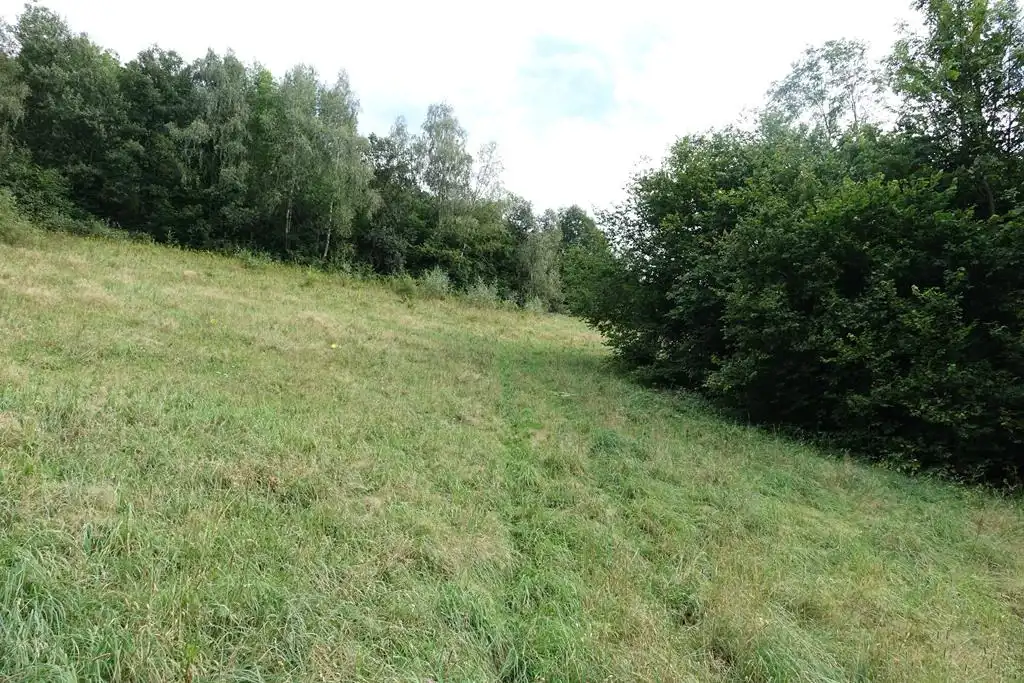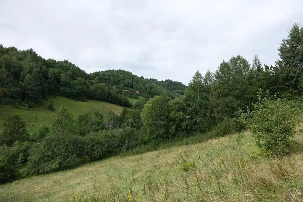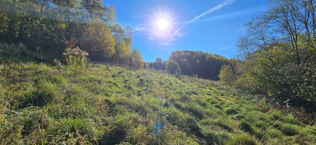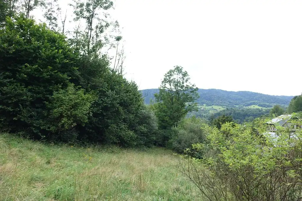 Działka o nieregularnym kształcie (maksymalna szerokość i długość 68 x 69m), nasłoneczniona, o sporym pochyle w kierunku południowo-zachodnim (w SOPO oraz MPZP teren nie jest oznaczony jako osuwiskowy).