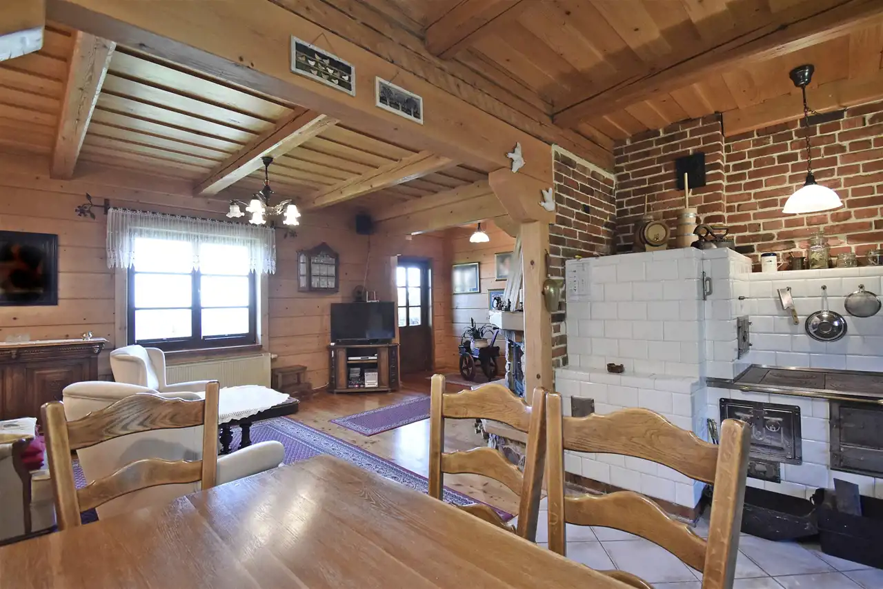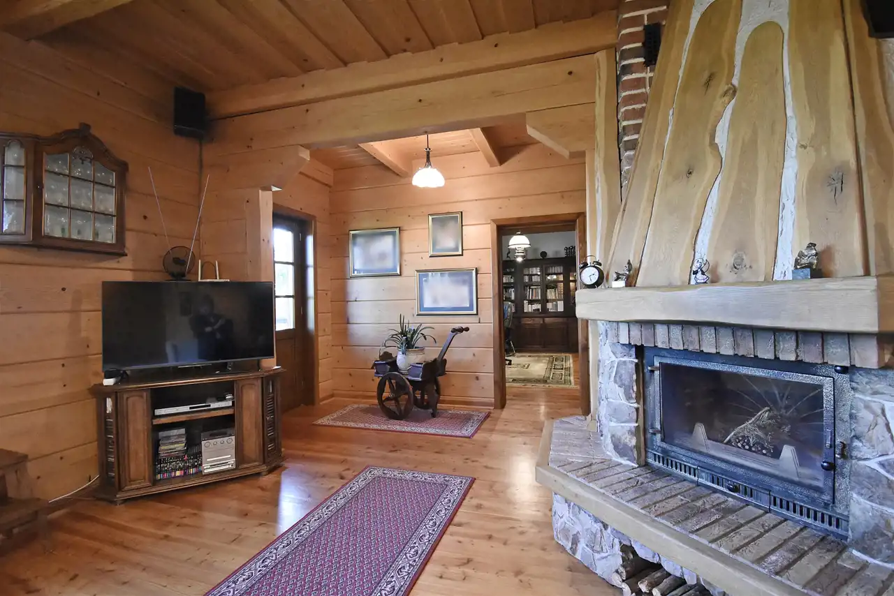 - ogrzewanie: za pomocą kominka z rozprowadzeniem ciepła na cały dom.