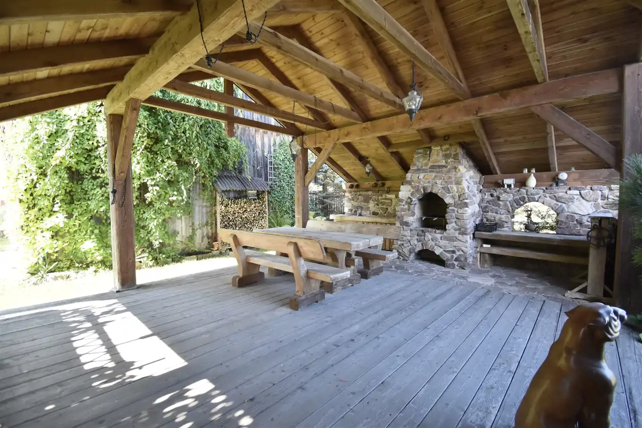 - budynek/altaną z paleniskiem do grillowania,