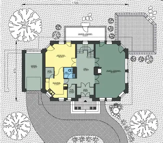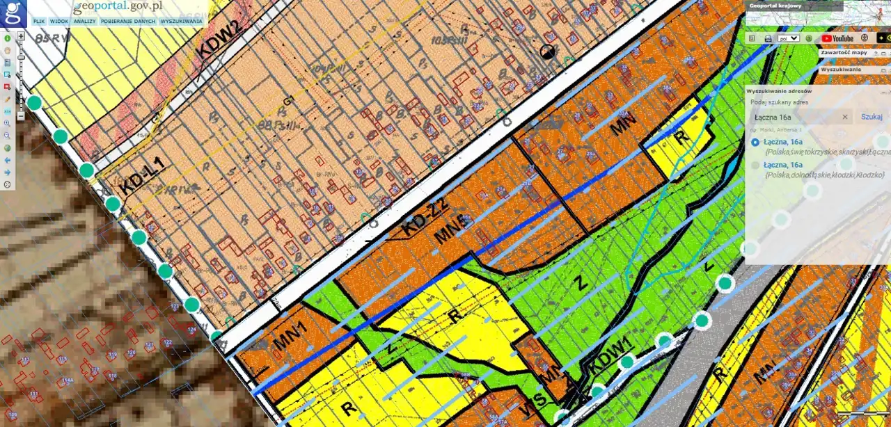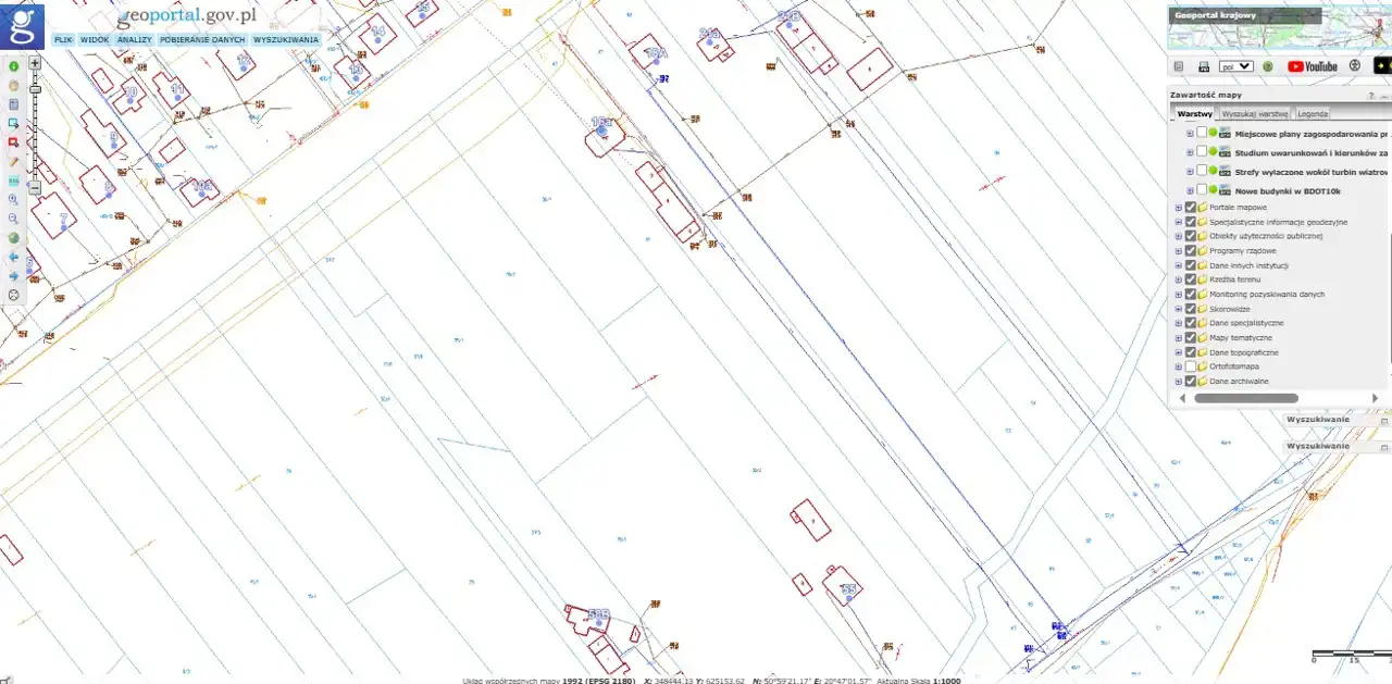 - Działka częściowo zagospodarowana, lekko nachylona, prostokąt