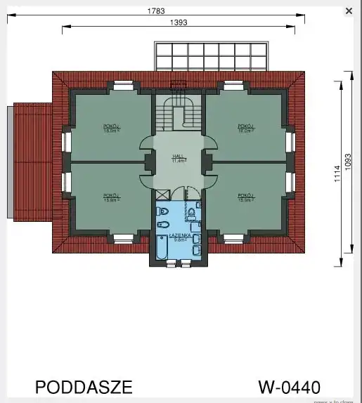hall ze schodami oraz korytarz - ok. 19,5 m2,