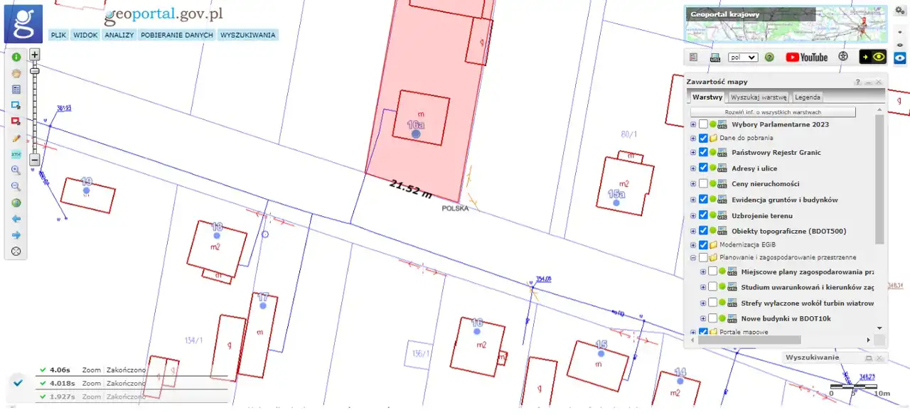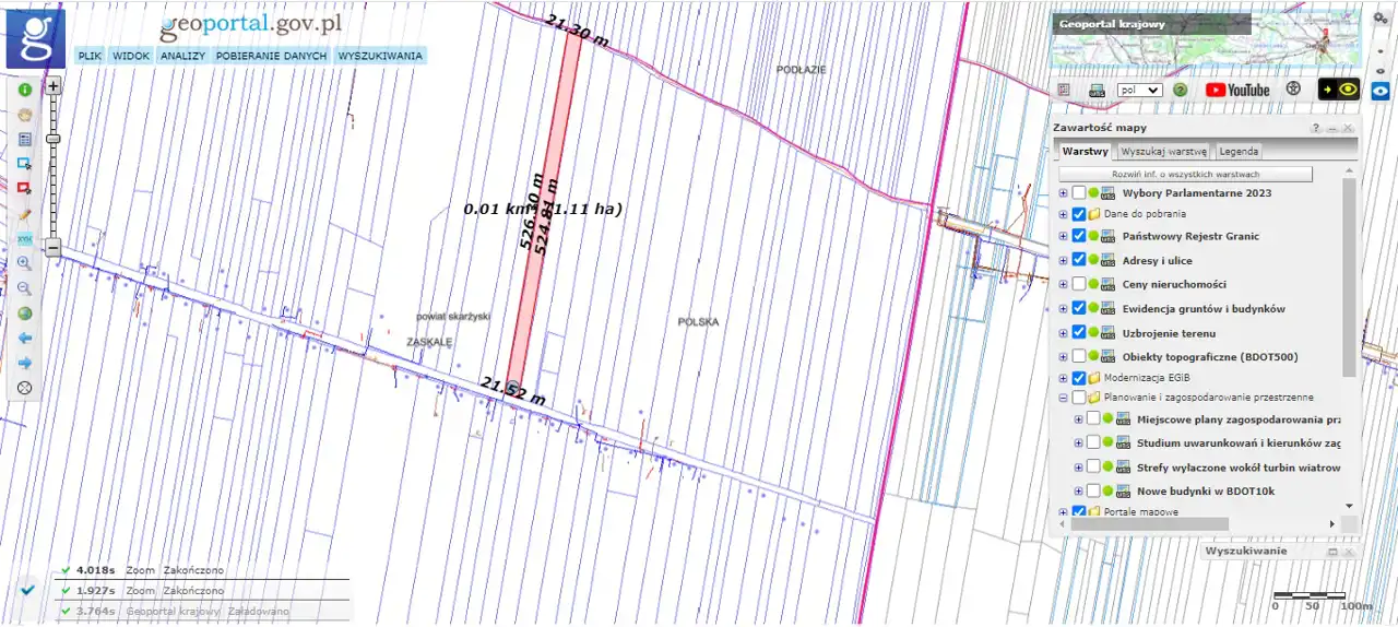 Wymiary działki : 21,5 (szer. od frontu) x 520 [m]
