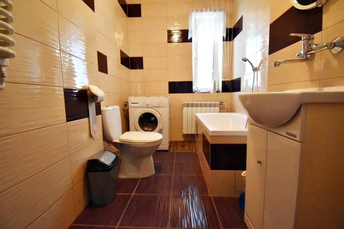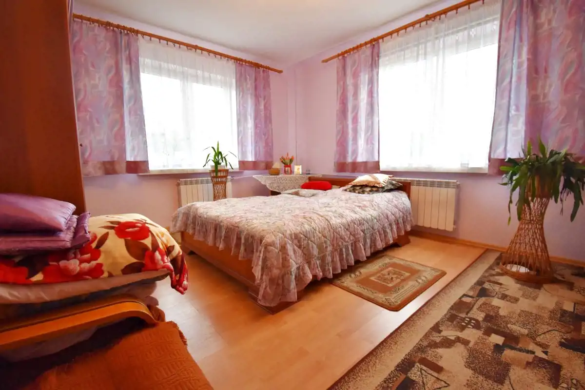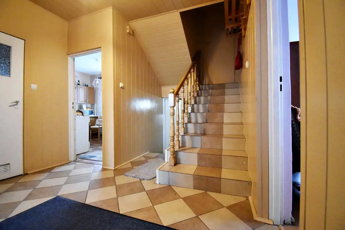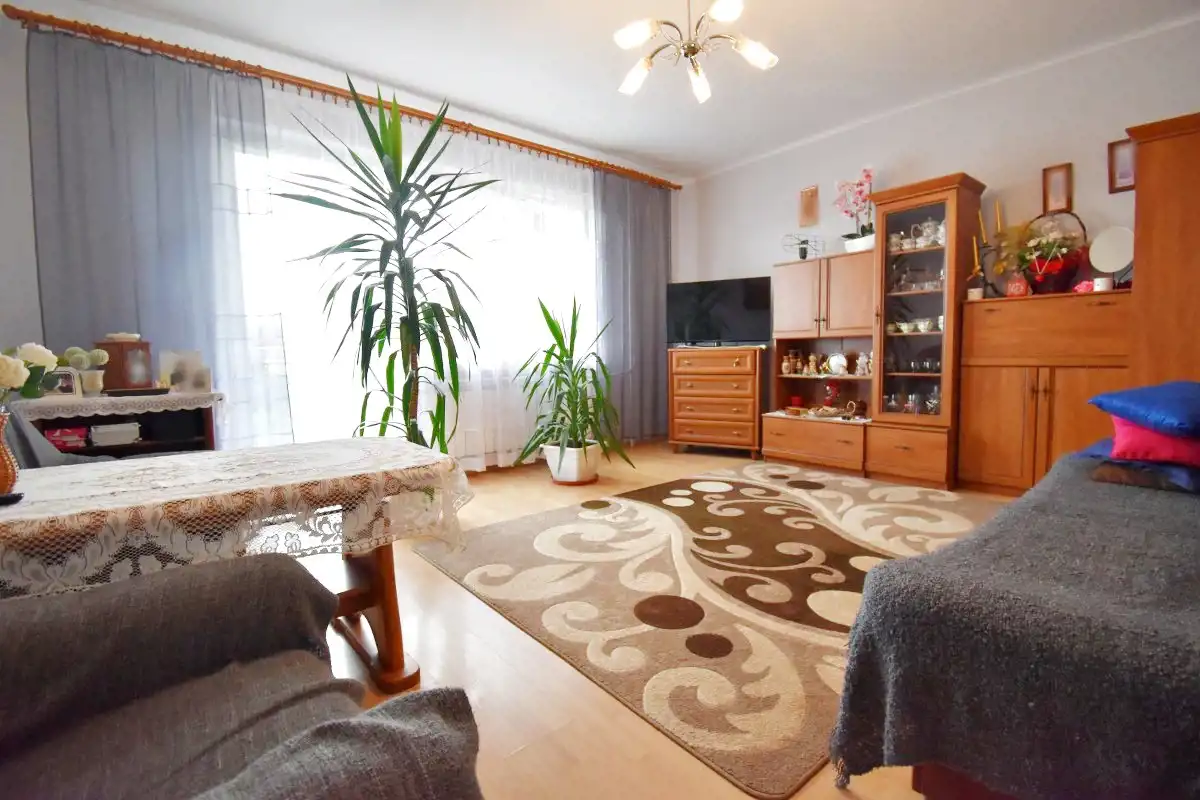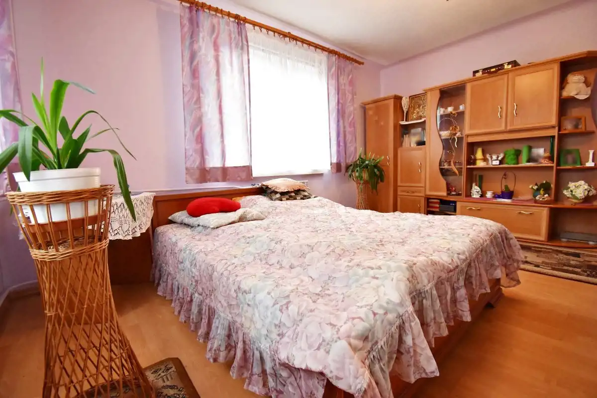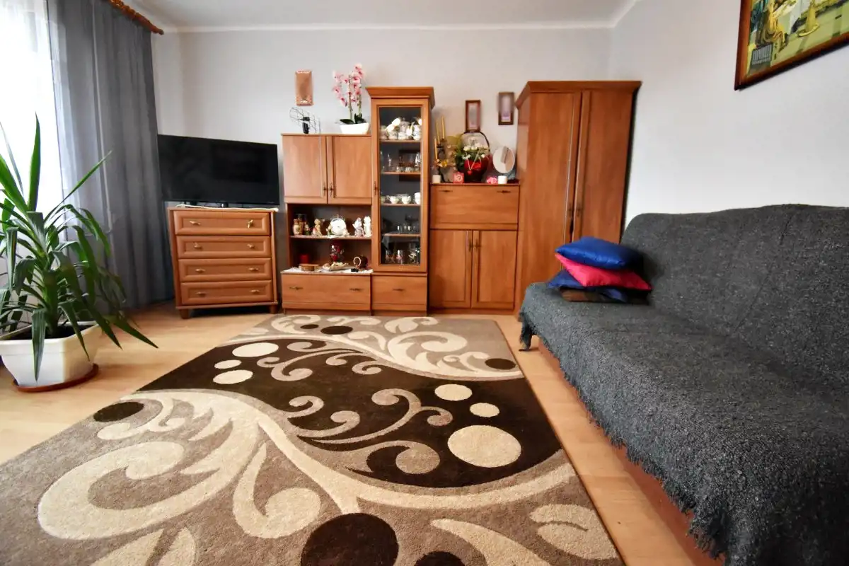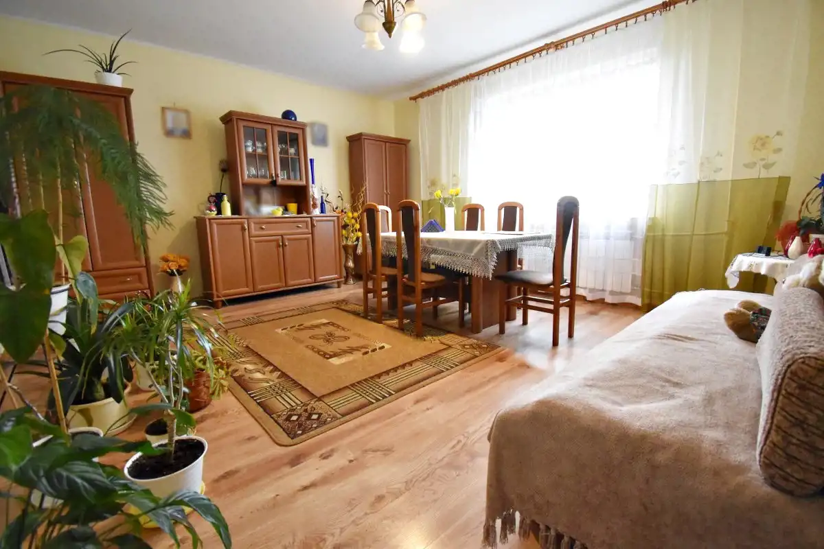 The windows are partially PVC and partially wooden. The property has replaced radiators, laminate flooring in the rooms, tiles in the hallway and bathroom, and linoleum in the kitchen. The hot water and heating are provided by a solid fuel furnace (installed 2 years ago).