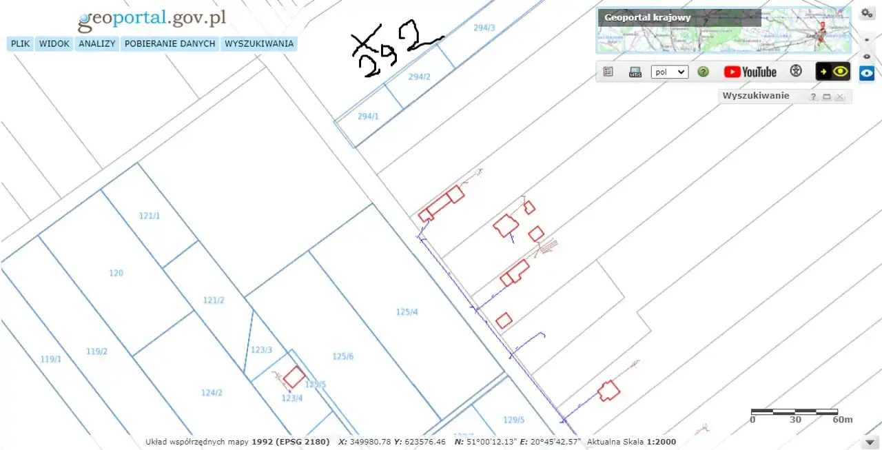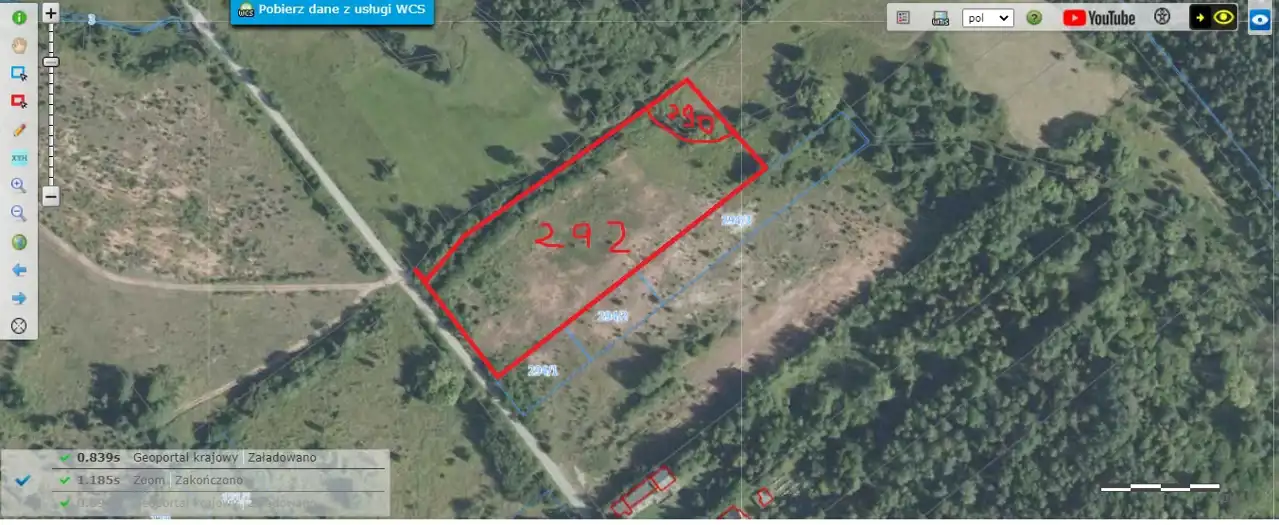 Media: woda na działce obok, prąd - na działce, gaz i kanalizacja - brak