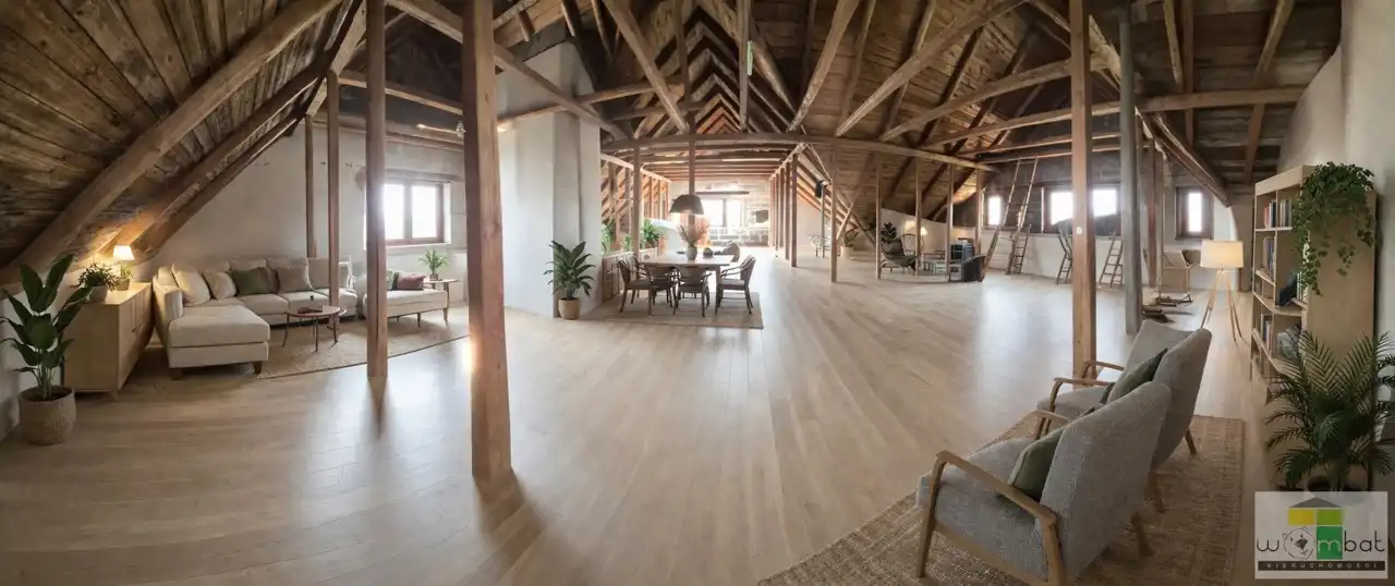 - dodatkowy strych 145 m² do adaptacji
