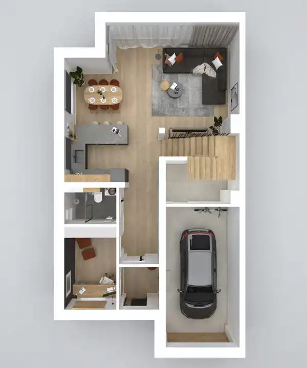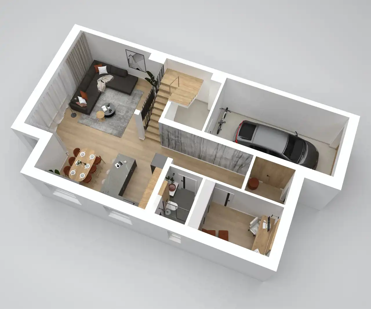 - GARAŻ w bryle budynku + 2 miejsca postojowe przed domem
