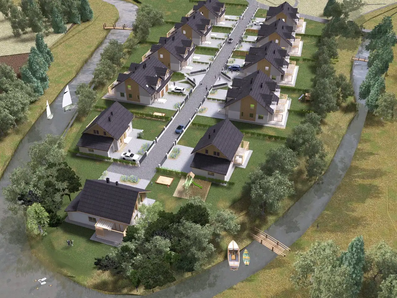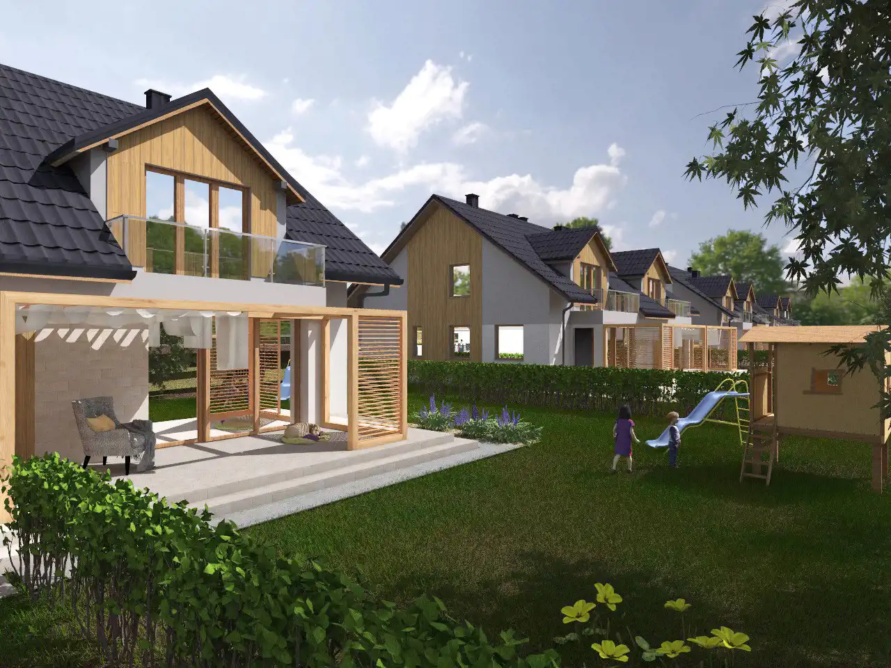 - na całym osiedlu łącznie 16 domów w zabudowie bliźniaczej oraz 3 domy wolnostojące