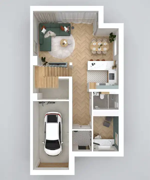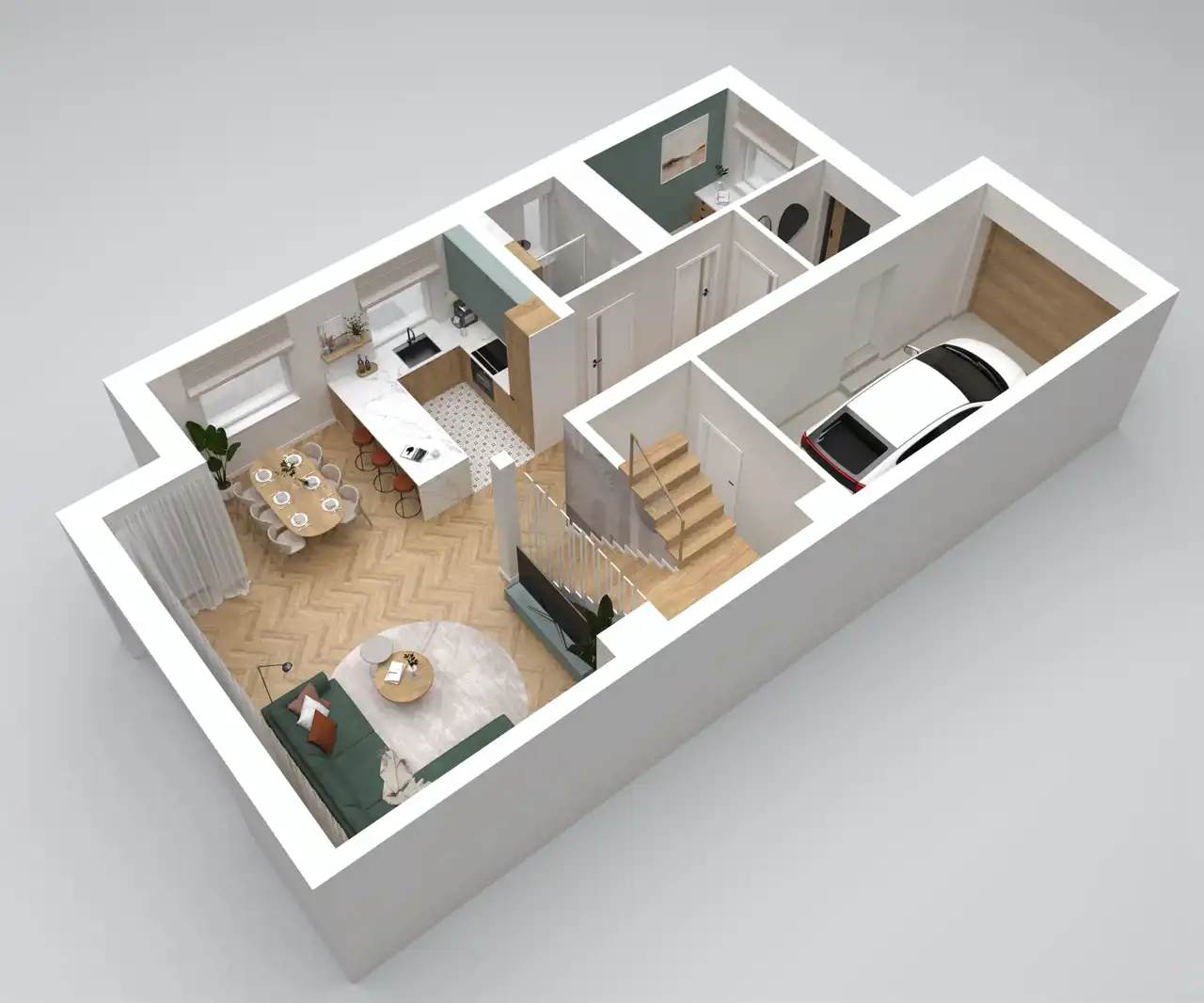 - GARAŻ w bryle budynku + 2 miejsca postojowe przed domem