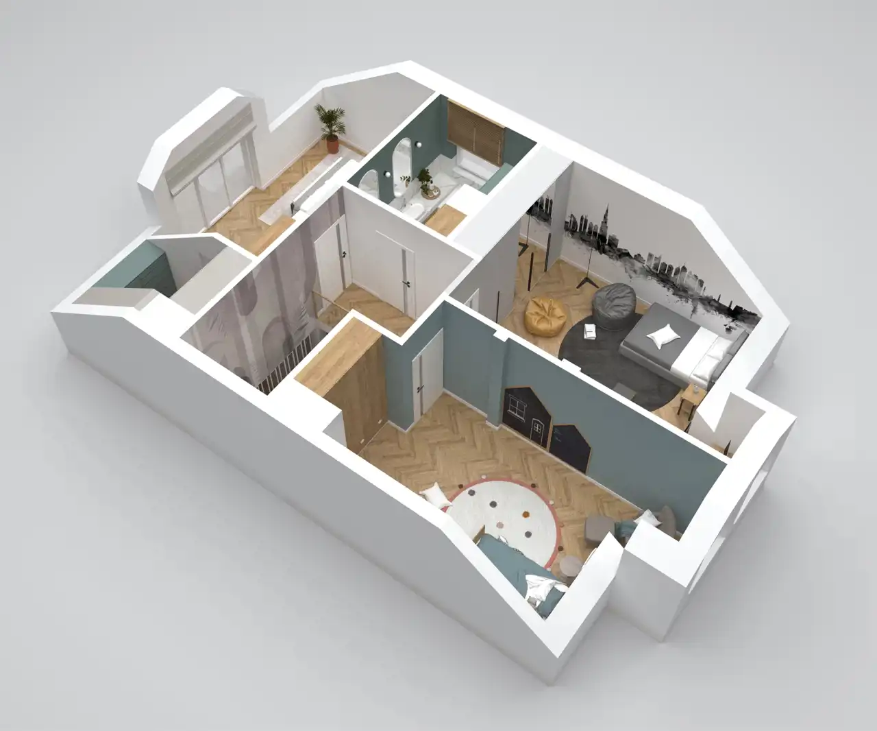 - Charakterystyka mieszkania 155 m2, 5 pokoi, do wykończenia