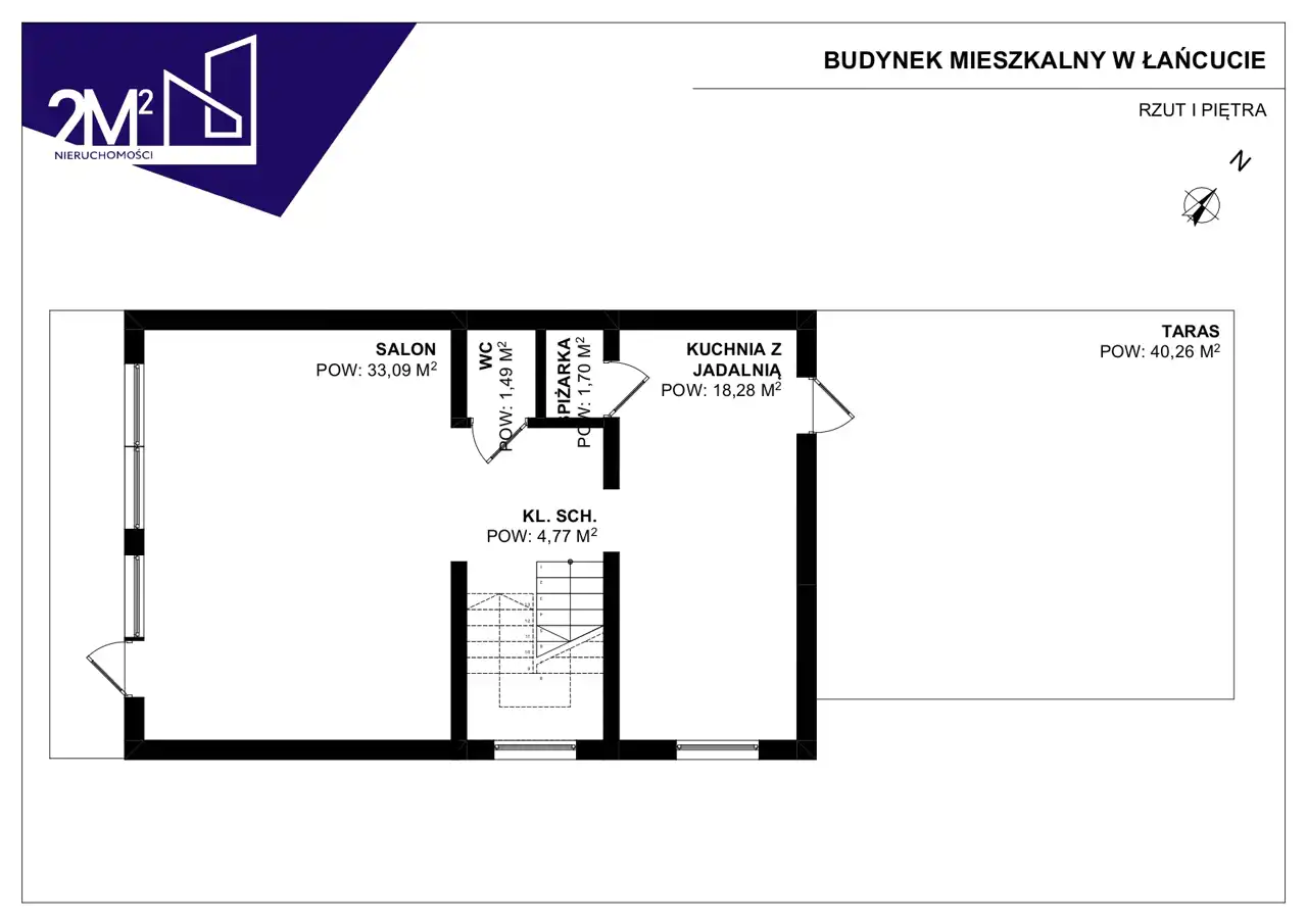 - salon, kuchnia z jadalnią, spiżarka, wc ,klatka schodowa