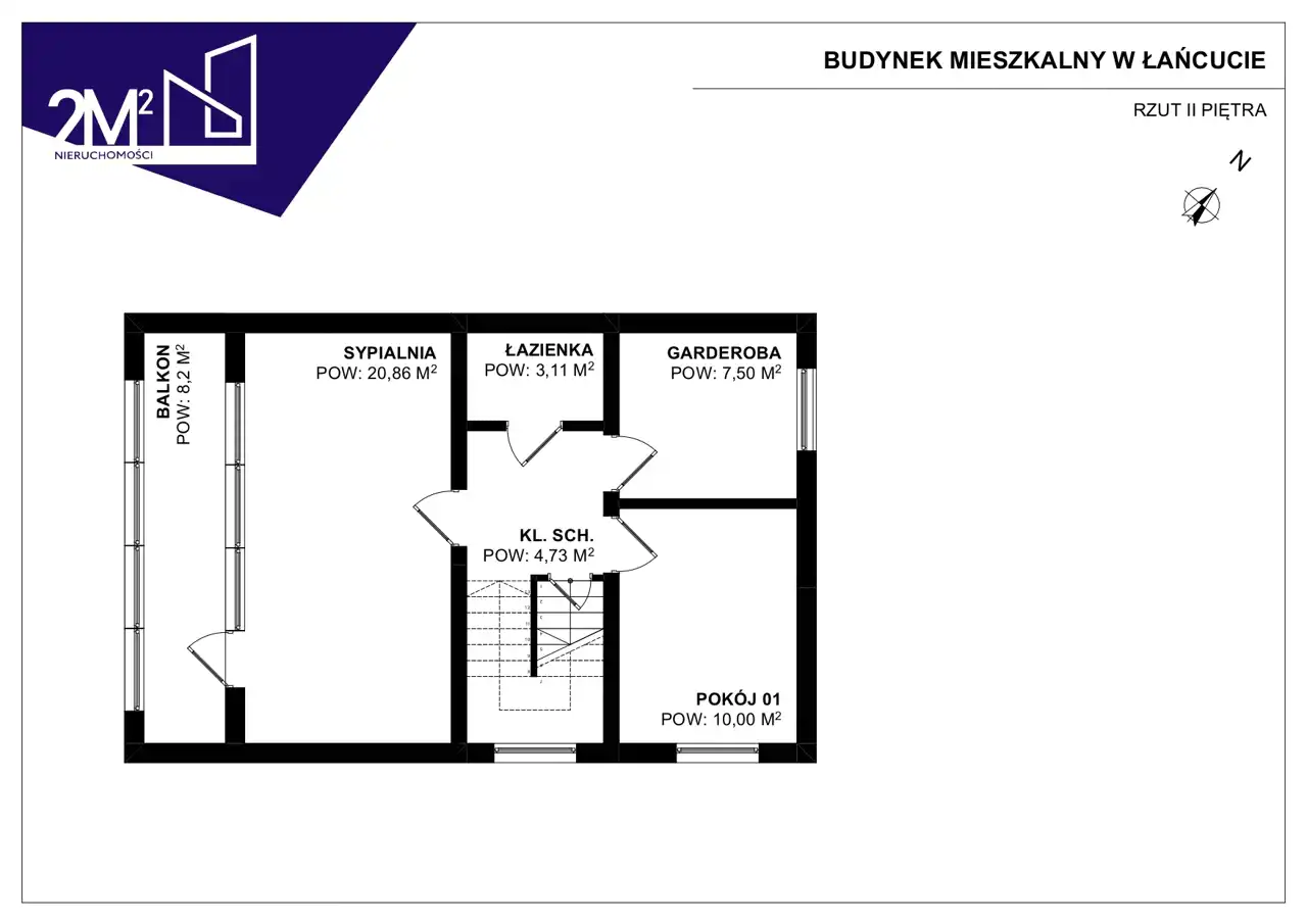 - dwa pokoje, garderoba, łazienka, klatka schodowa z wyjściem na poddasze nieużytkowe