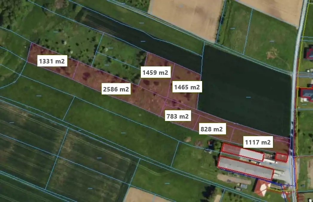 Dwie działki bez warunków zabudowy (do sprzedaży osobno lub na powiększenie jednej z dwóch oferowanych wyżej nieruchomości): o powierzchni 1331 m2 oraz 2586 m2 łącznie 3917 m2 - 150 000 zł