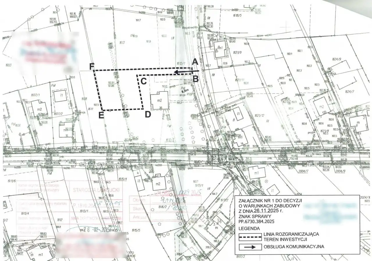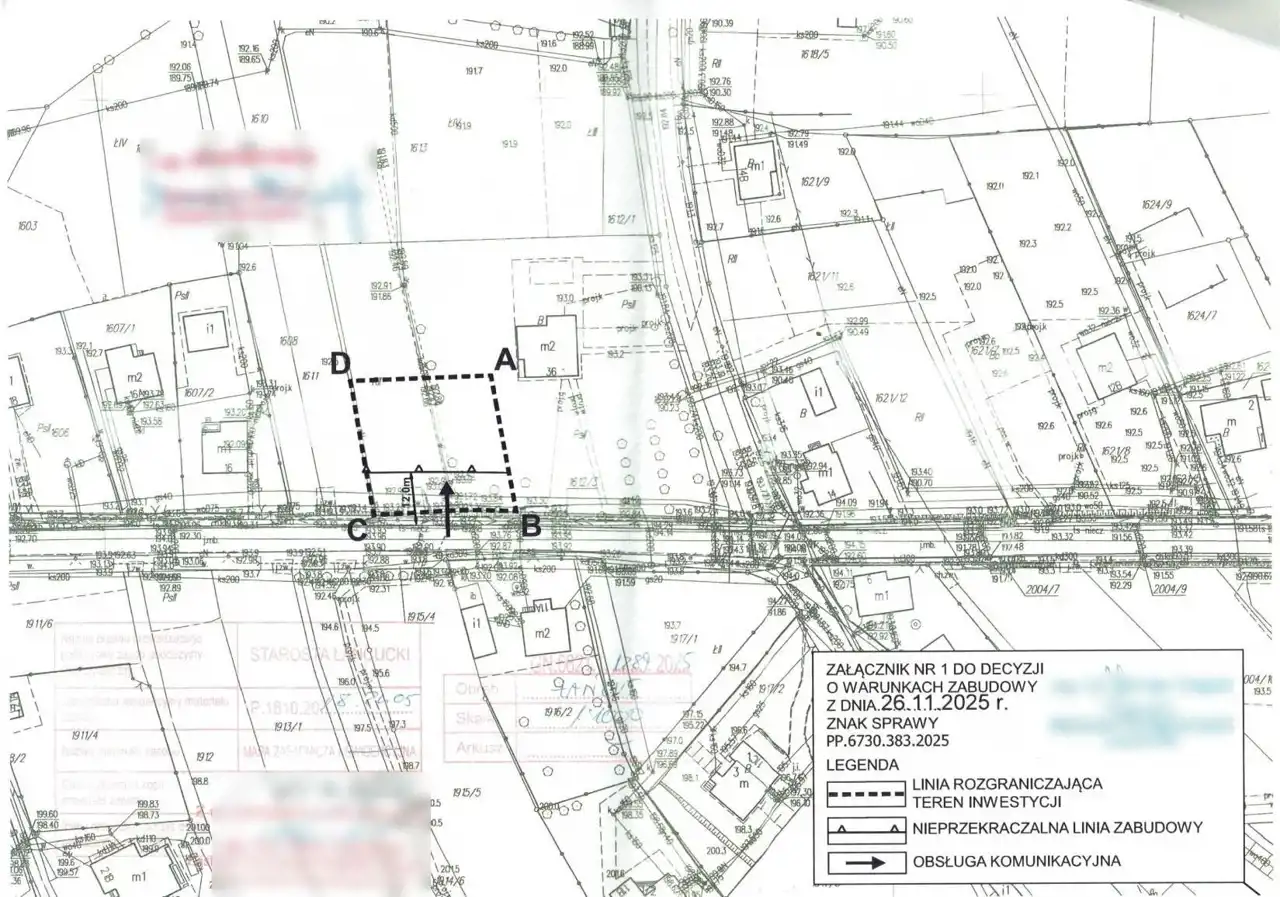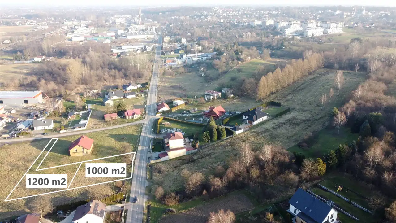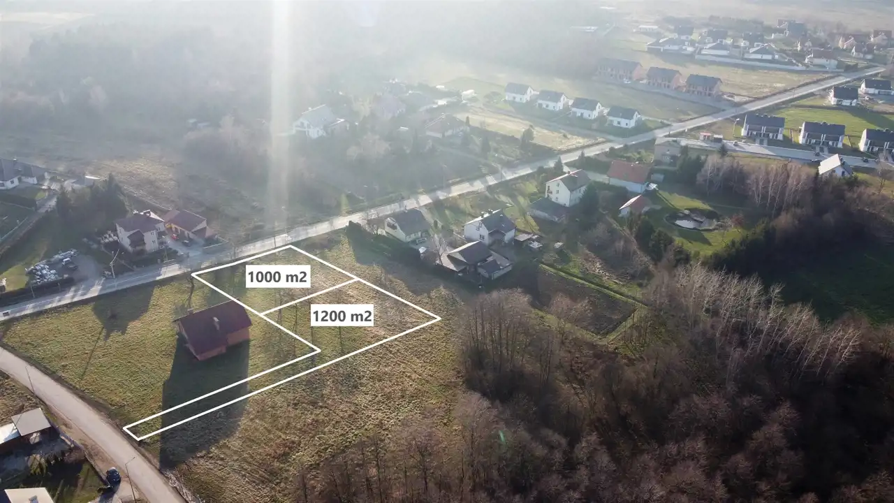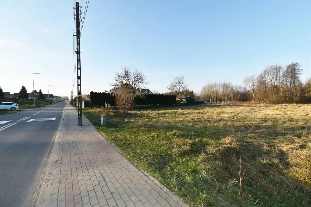 Działka o kształcie zbliżonym do kwadratu, o powierzchni 10 arów. Lokalizacja w pierwszej linii zabudowy przy oświetlonej drodze asfaltowej z chodnikiem. Wymiary: ok. 32,5 m x 31 m (z możliwością powiększenia). W najbliższym sąsiedztwie zabudowa mieszkaniowa. Powstaje tu wiele nowych budynków mieszkalnych jednorodzinnych, także w zabudowie bliźniaczej i szeregowej.