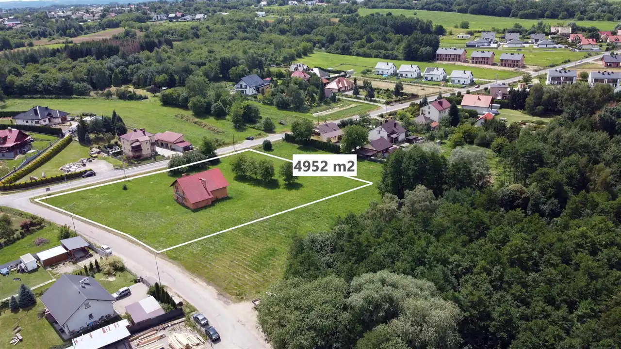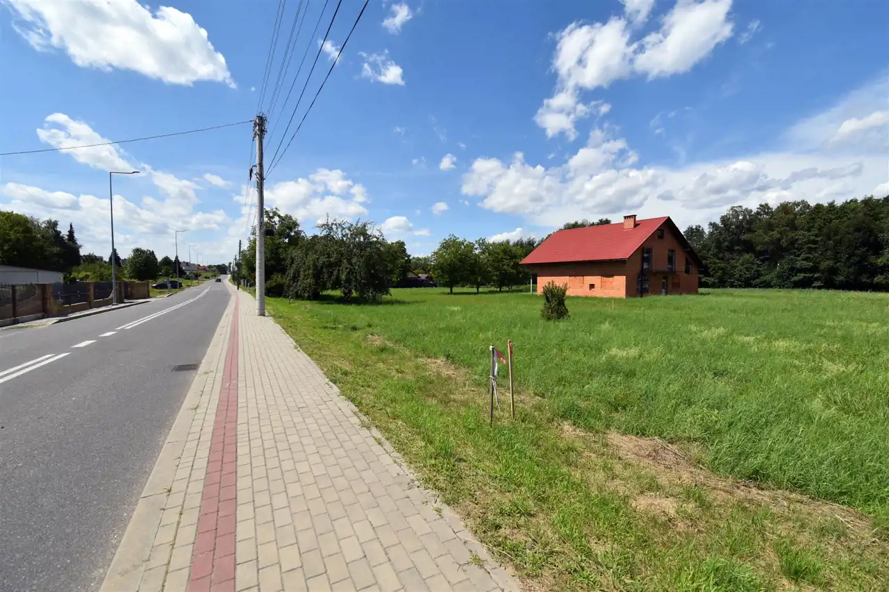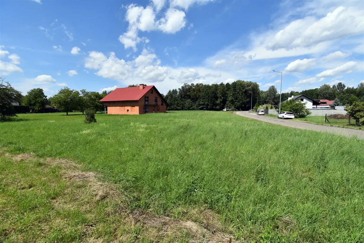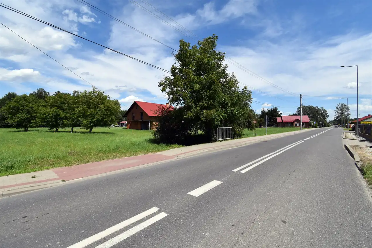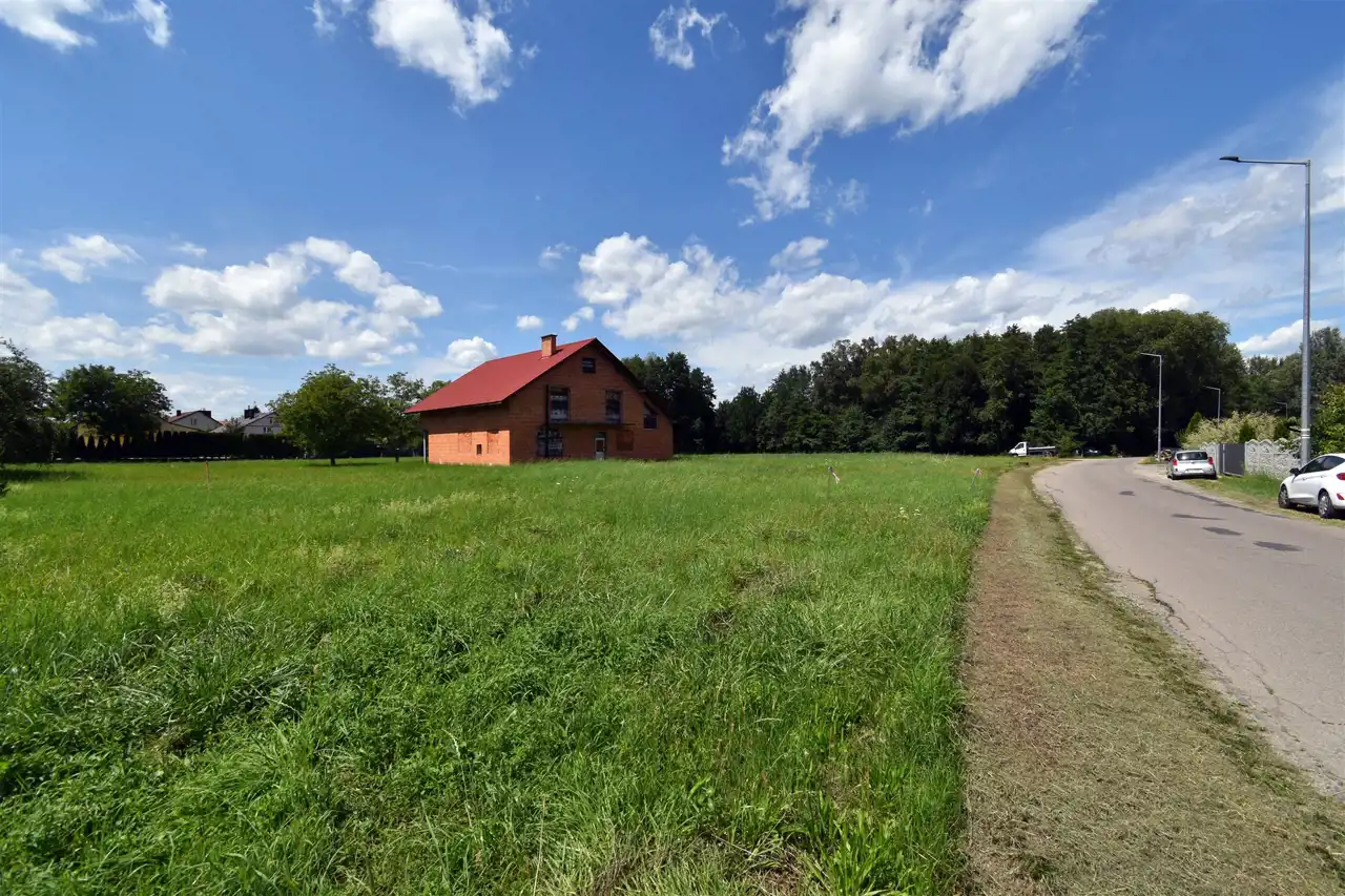 Działka o kształcie zbliżonym do kwadratu, o powierzchni 49,52 ara. Lokalizacja w pierwszej linii zabudowy przy oświetlonej drodze asfaltowej z chodnikiem. Ze względu na dużą powierzchnię planowany podział działki na mniejsze działki budowlane. W najbliższym sąsiedztwie zabudowa mieszkaniowa. Buduje się tu wiele nowych budynków mieszkalnych jednorodzinnych, w zabudowie bliźniaczej i szeregowej. Planowana jest budowa osiedla budynków wielorodzinnych. W okolicy liczne obiekty usługowe, produkcyjne oraz siedziby firm.