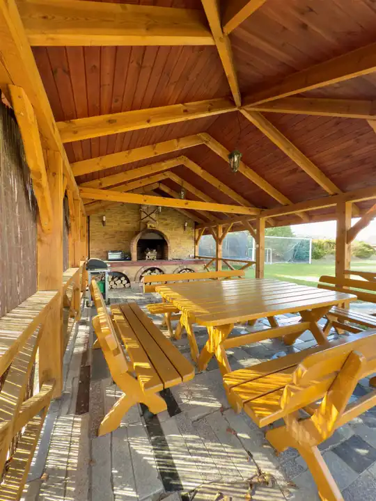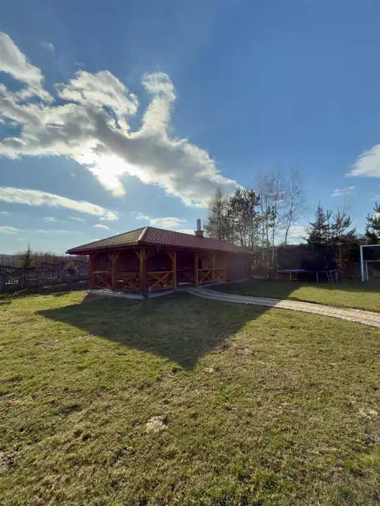 Nieruchomość została starannie zaprojektowana, a jej zaletą jest także garaż w bryle budynku oraz dodatkowy garaż na zewnątrz. Ułatwia to parkowanie i zapewnia dodatkową przestrzeń do przechowywania. Na działce znajduje się również altana z murowanym kominkiem do grilla, idealna na letnie spotkania w ogrodzie.