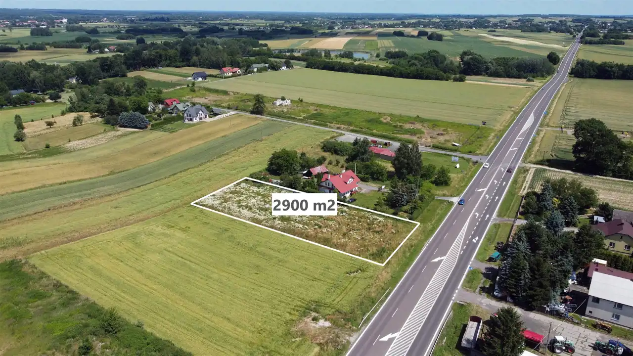 Działka w pierwszej linii zabudowy, przy drodze asfaltowej - droga krajowa nr 94. Lokalizacja zapewnia bardzo dobry dojazd do Rzeszowa drogą nr 94 lub autostradą A4. Węzeł autostrady A4 w odległości około 6 km.