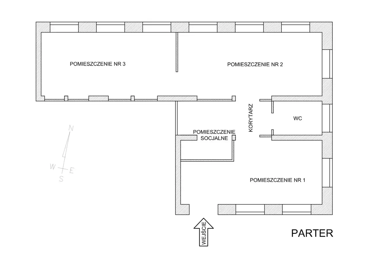 Lokal usługowy składa się z 3 pomieszczeń biurowych, pomieszczenia socjalnego, korytarza, holu i wc. Lokal mieści się w na wysokim parterze budynku mieszkalnego wielorodzinnego. Wejście do budynku samodzielne.