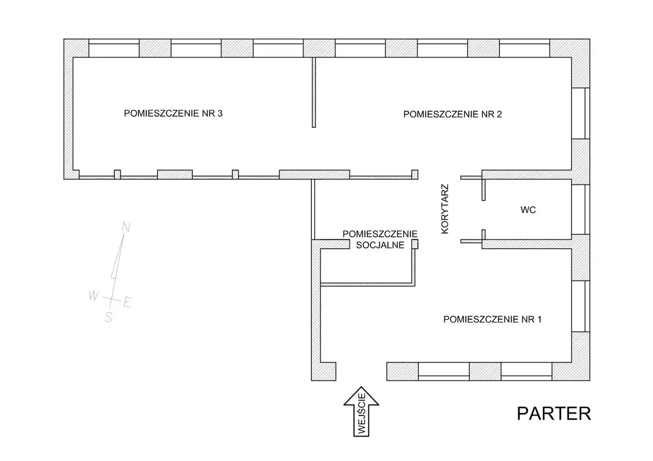 Lokal usługowy składa się z 3 pomieszczeń biurowych, pomieszczenia socjalnego, korytarza, holu i wc. Lokal mieści się w na parterze budynku mieszkalnego wielorodzinnego. Wejście do budynku samodzielne.