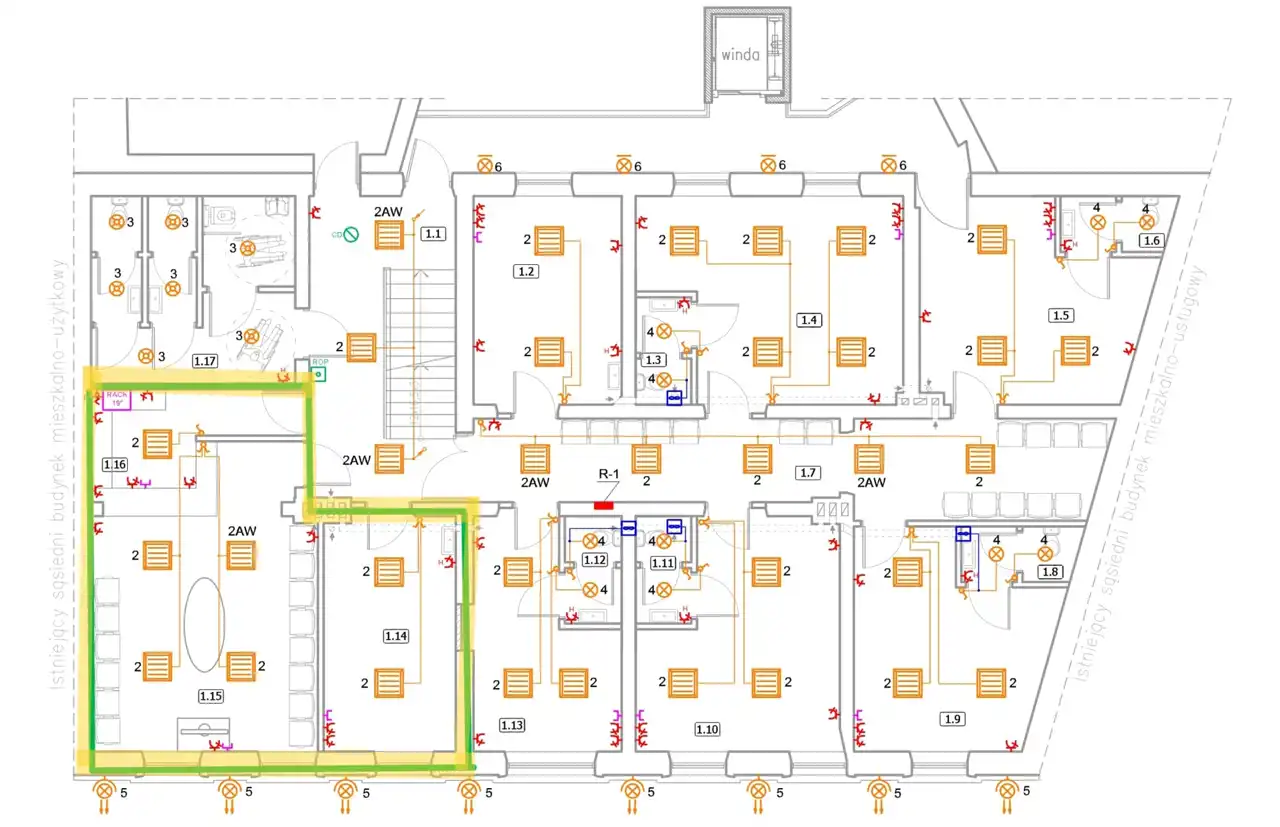 - Możliwość przearanżowania wnętrza i wydzielenia odrębnej przestrzeni na potrzeby przyszłego najemncy.