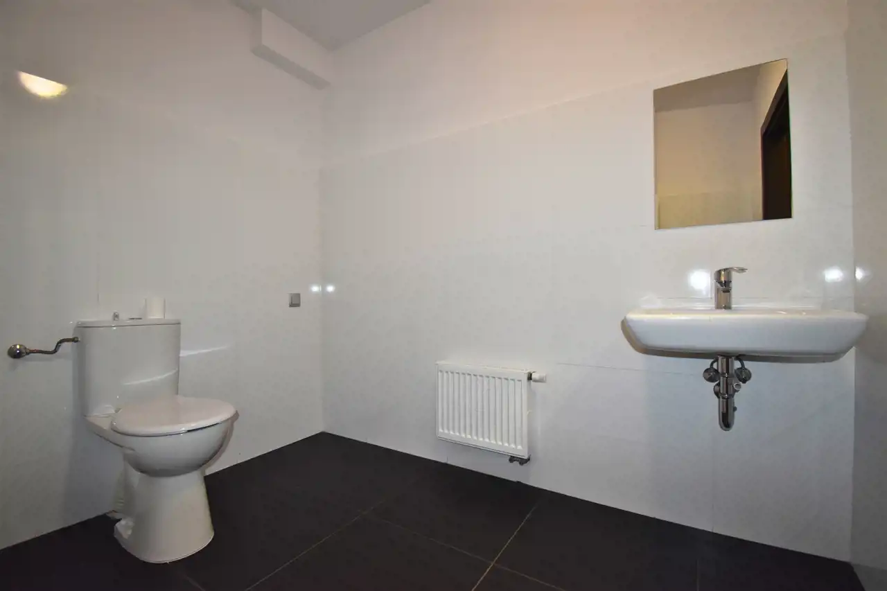 - Na korytarzu znajduje się toaleta będąca częścią wpółną piętra: duża toaleta męska i damska