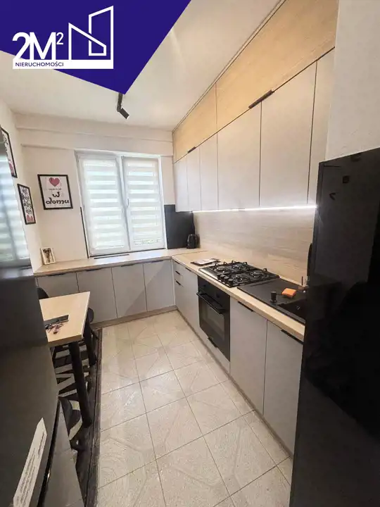 Oddzielna kuchnia z oknem, w pełni funkcjonalna, z miejscem na stolik, co umożliwia wygodne przygotowywanie i spożywanie posiłków.