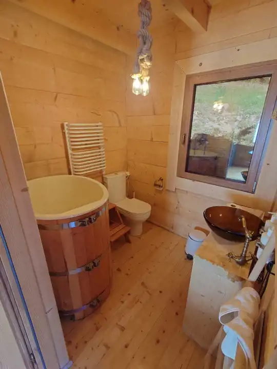 Obok jest budynek hotelowy z restauracją, centrum SPA i basenem wewnętrznym. Na terenie są 2 baseny zewnętrzne.