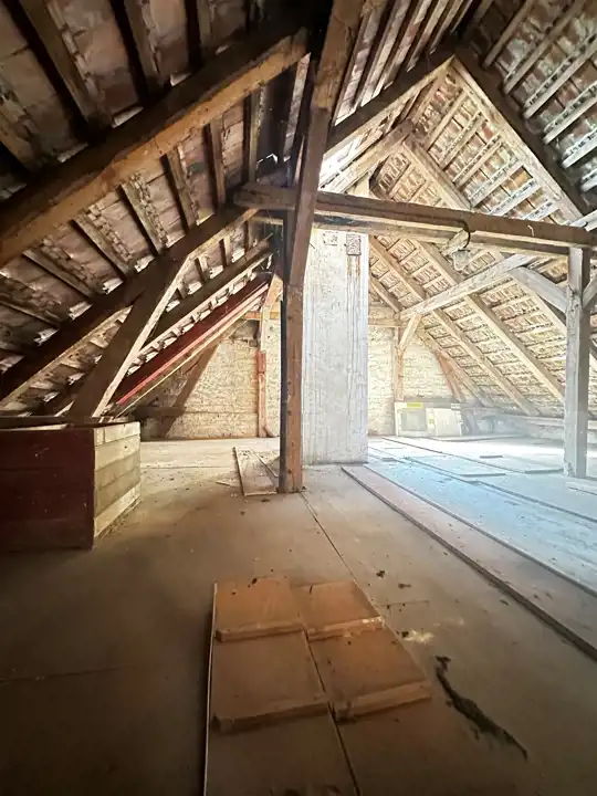 Budynek posiada częściowe podpiwniczenie oraz dostępne poddasze użytkowe, które można zaadaptować np. na biuro, archiwum, zaplecze lub część mieszkalną (po uzyskaniu odpowiednich pozwoleń