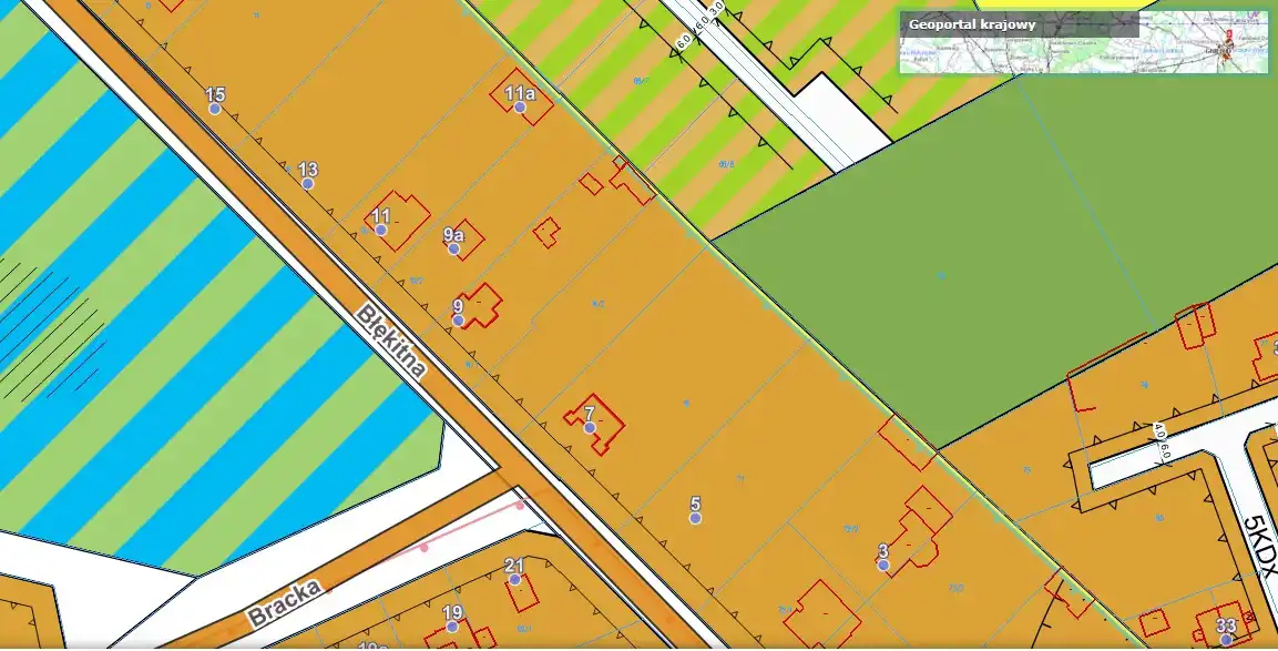 - Media Woda: w drodze; Kanalizacja: w ulicy; Prąd: w ulicy
