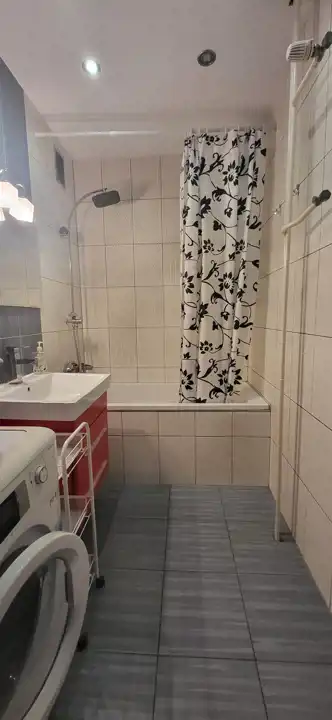 Kuchnia wyposażona w zmywarkę, kuchenkę gazową i okap oraz lodówkę, w łazience do dyspozycji pralka.