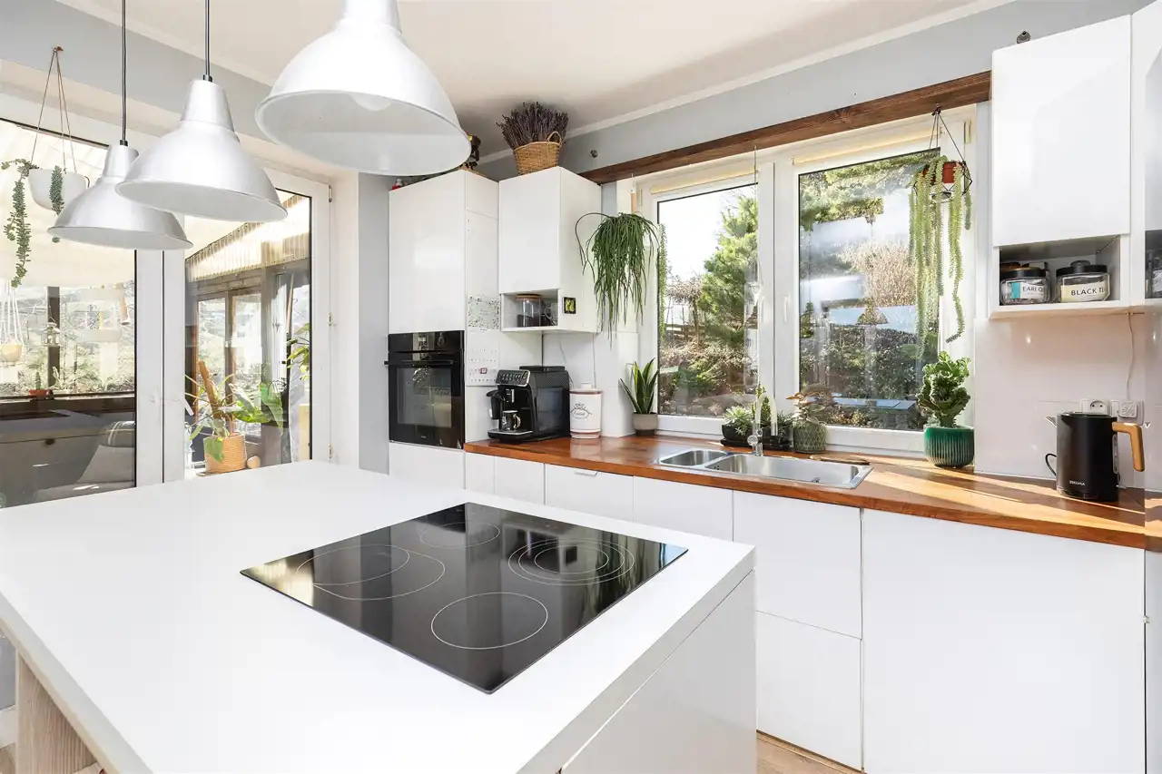 Dom jest jasny i energooszczędny – największe okna skierowane są na wschód i południe, co gwarantuje doskonałe nasłonecznienie przez cały rok i