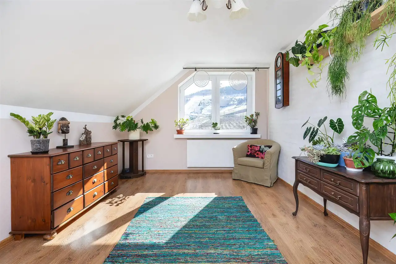 • Dodatkowo: ocieplony i wyłożony boazerią strych.