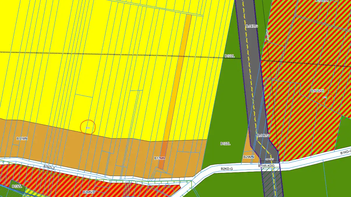 Część budowlana: ok. 3 200 m² – teren objęty miejscowym planem zagospodarowania przestrzennego, przeznaczony pod zabudowę mieszkaniową jednorodzinną