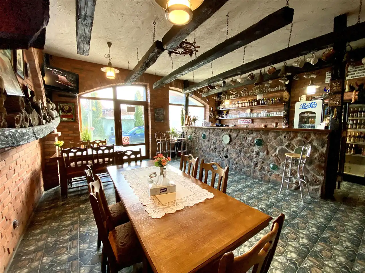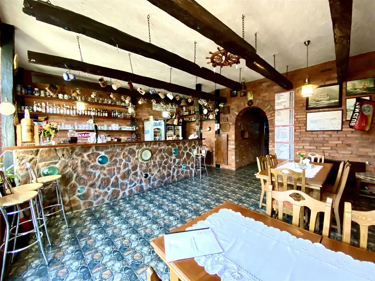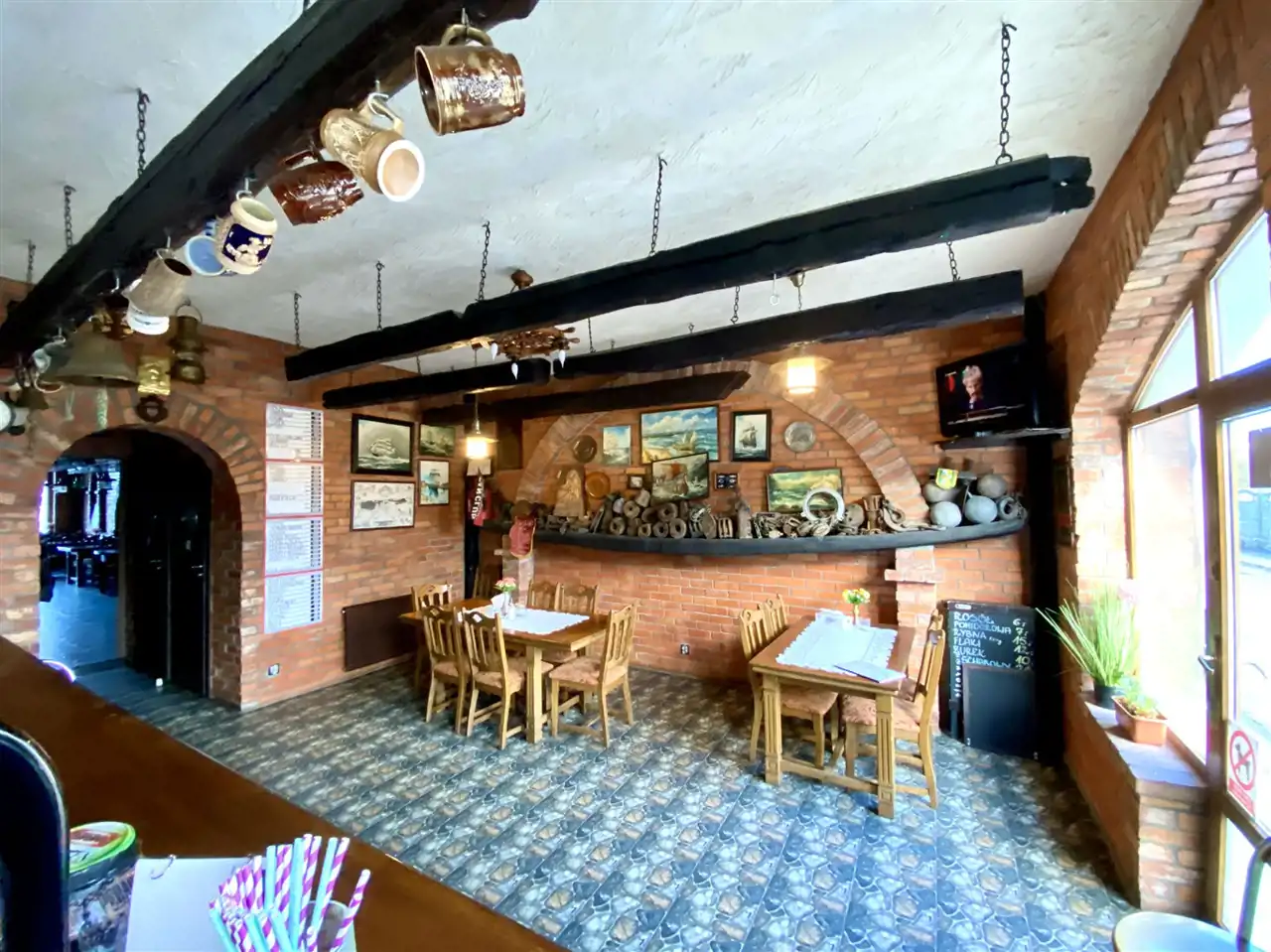 Nieruchomość składa się z części restauracyjnej o powierzchni 135,49m2, części mieszkalnej o powierzchni 154,60 m2 oraz poddasza. Część mieszkalna położona jest na pierwszym i drugim piętrze. Składa się z salonu, 4 pokoi, 2 łazienek z wc oraz wanną i prysznicem, dwóch małych balkonów oraz dużego tarasu znajdującego się na I piętrze o powierzchni ok. 70m2. Natomiast część restauracyjna składa się z sali barowej, sali jadalnej, zaplecza gastronomicznego z wyposażeniem oraz wc.