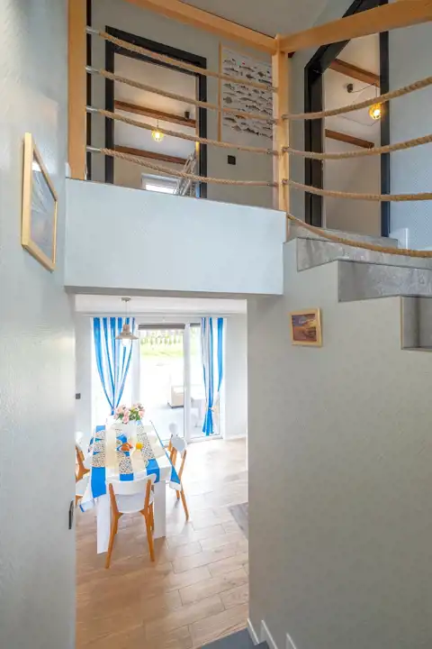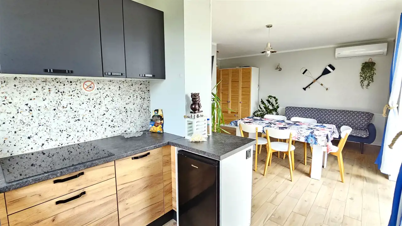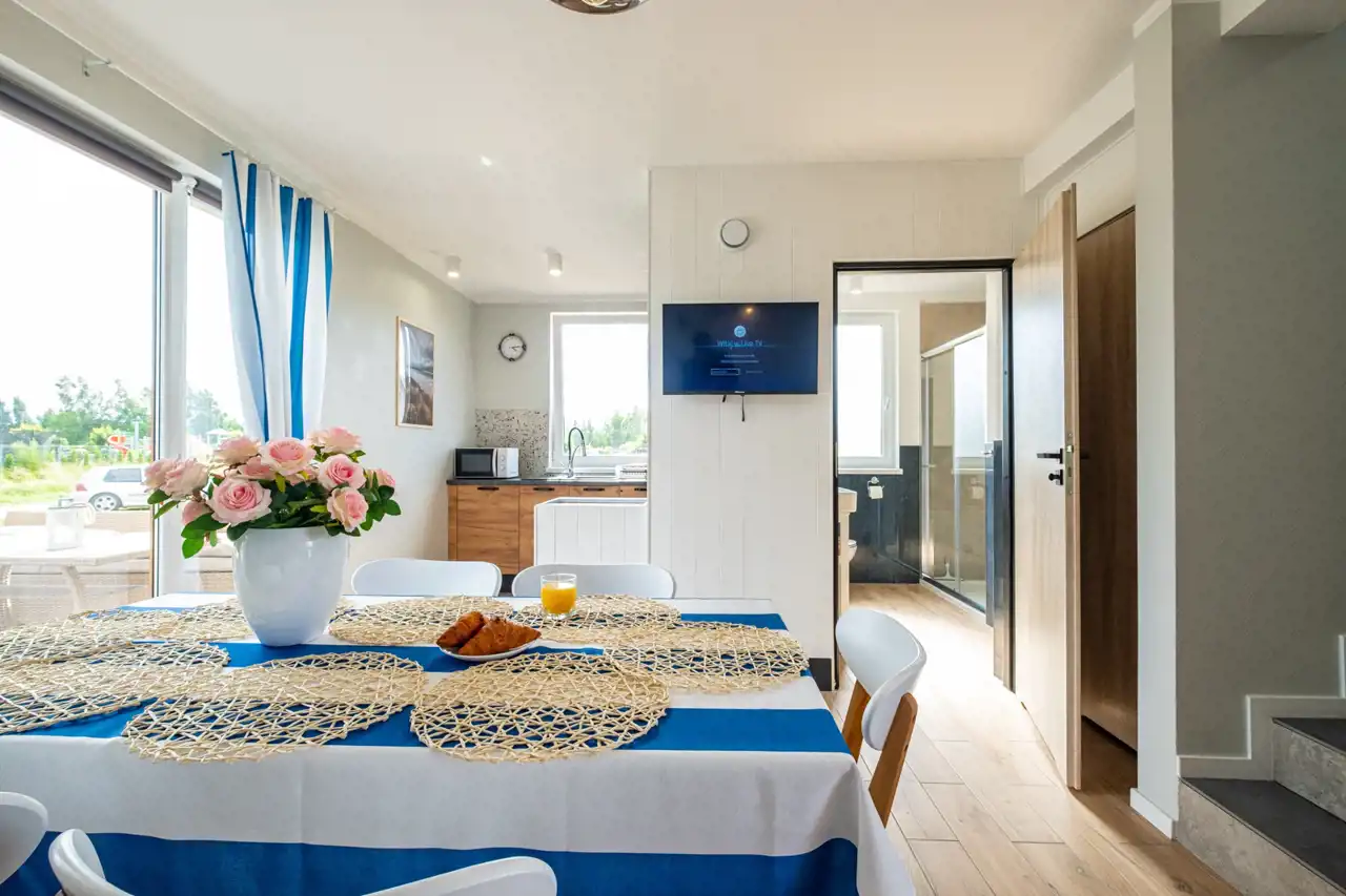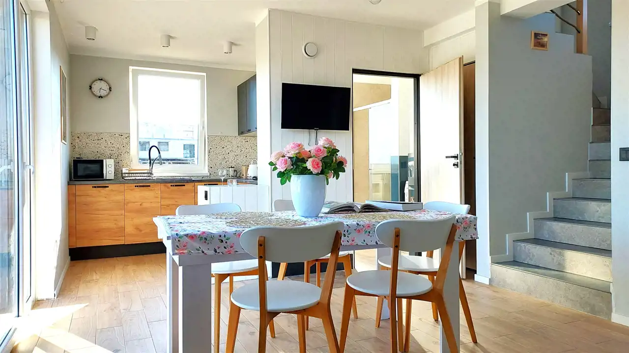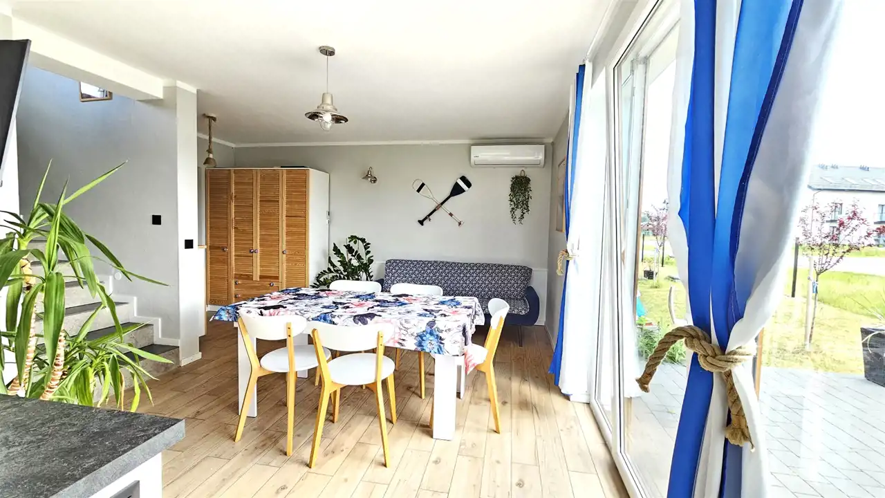 Dom wolnostojący o powierzchni użytkowej 70m2, położony opodal "Parku Dinozaurów" (4 min samochodem do centrum nadmorskiej miejscowości Łeba), usytuowany jest w nowo powstającym prestiżowym, bezpiecznym osiedlu komfortowych domów jednorodzinnych, w malowniczej, zacisznej okolicy. Nieruchomość oferuje przytulny i komfortowy układ pomieszczeń. Na parterze znajduje się przedpokój, urokliwy, przestronny klimatyzowany salon z wyjściem na słoneczny taras (idealny na relaks i spotkania towarzyskie), połączony z widną, otwartą kuchnią oraz łazienką z WC i prysznicem. W salonie znajdują się stylowe schody prowadzące na drugą kondygnację, na której mieszczą się trzy wygodne sypialnie, zapewniające prywatność i komfort wszystkim domownikom. Budynek, zaprojektowany został w nietuzinkowy sposób dbając o jego maksymalną funkcjonalność, komfort i wygodę przyszłych mieszkańców, czyniąc go jednocześnie eleganckim z zewnątrz jak i wewnątrz. Do morza, jak i do jeziora Sarbsko dojedziemy samochodem w ciągu 5min., gdzie znajduje się szkoła windsurfingu, w otulinie Słowińskiego Parku Krajobrazowego. W pobliżu nieruchomości znajdują się sklepy, punkty gastronomiczne i markety. Reasumując, całość prezentuje się atrakcyjnie - można kontynuować działalność, a z czasem aranżować pod swój gust. Oferta skierowana i godna polecenia dla osób chcących zamieszkać z dala od zgiełku miejskiego lub prowadzić już działający, prosperujący, dochodowy biznes.